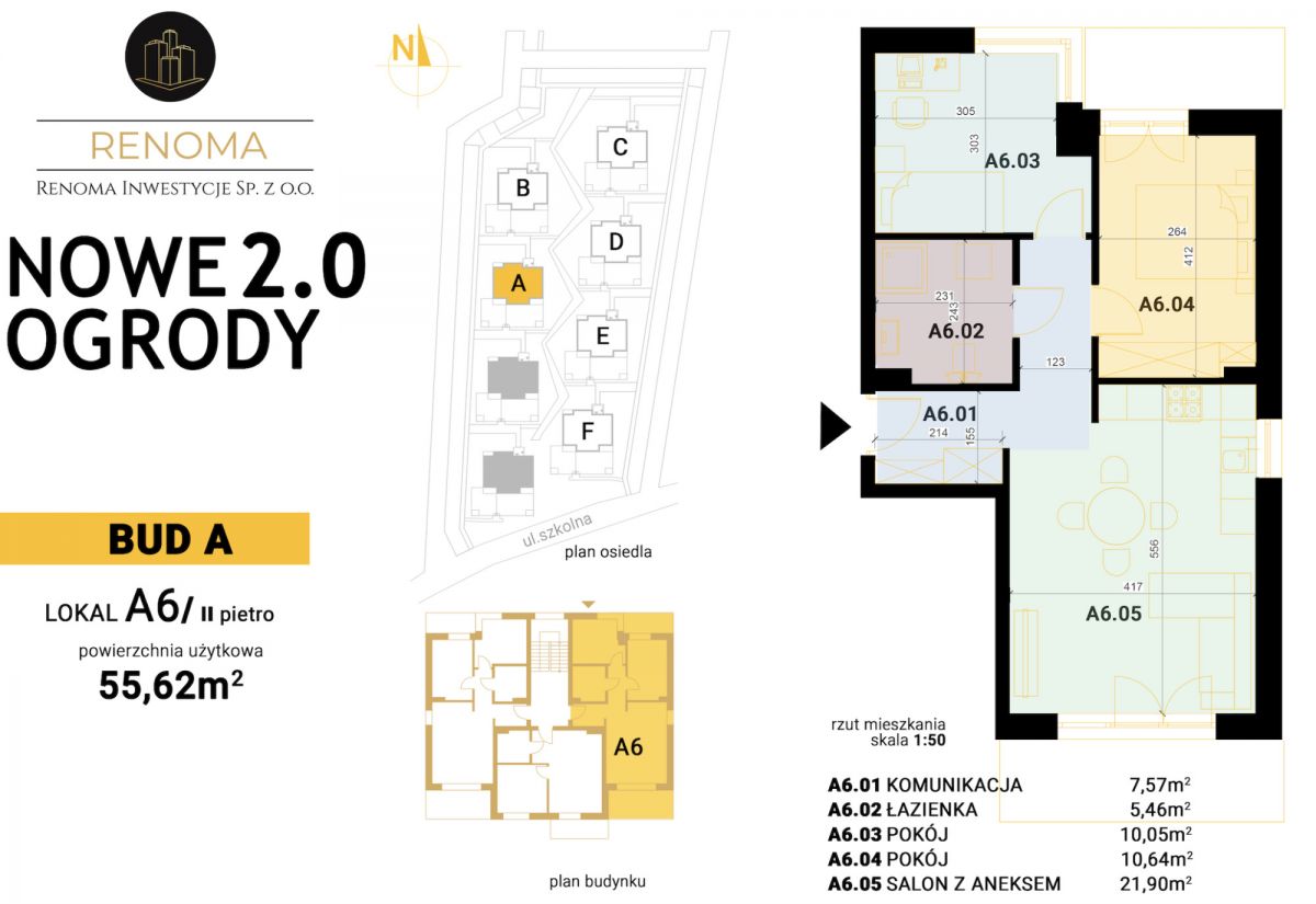 * II Piętro: Trzy ustawne lokale (55,62 m², 38,43 m², 55,71 m²).