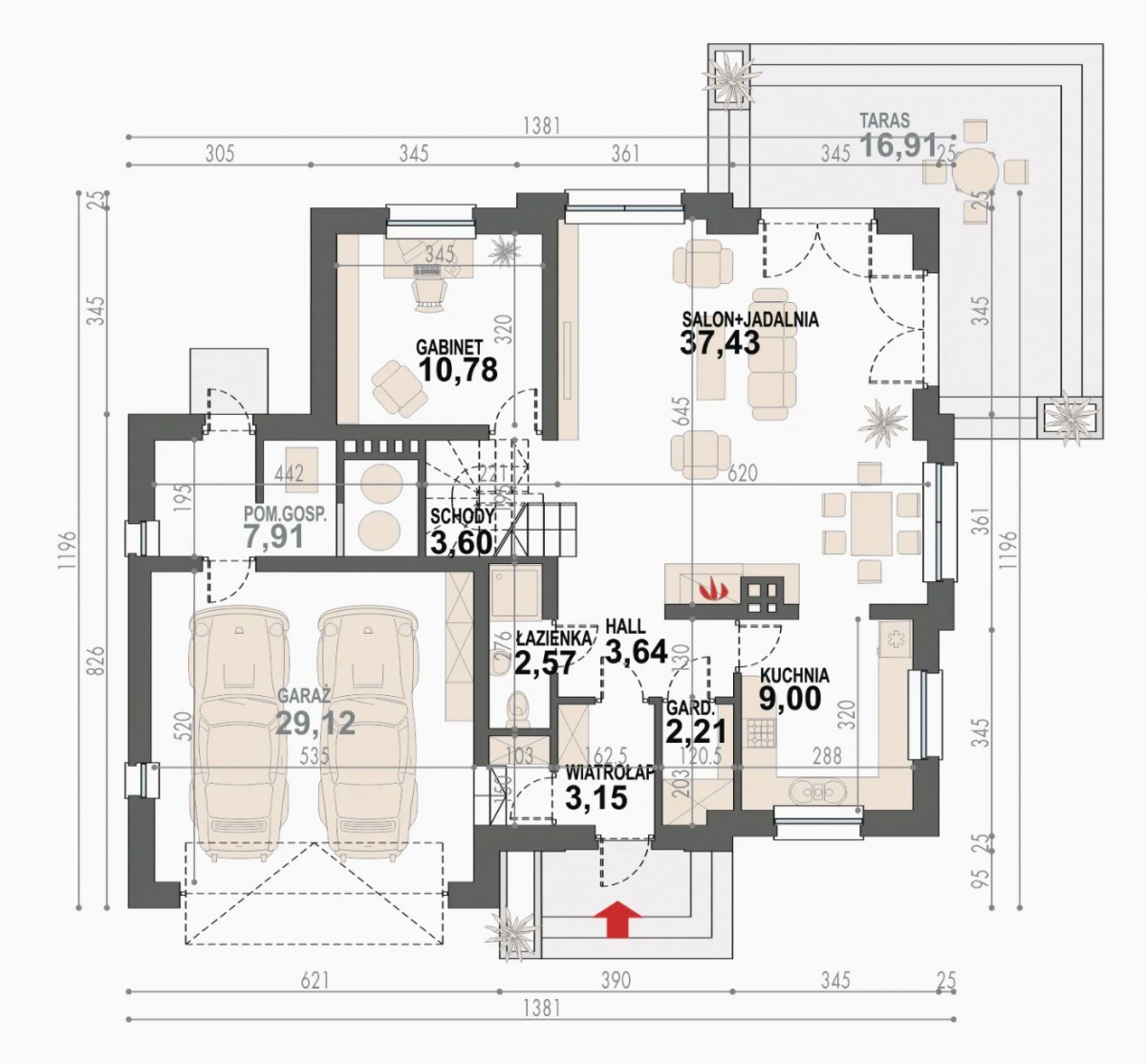 - GARAŻ DWUSTAONOWISKOWY 29,12 mkw.