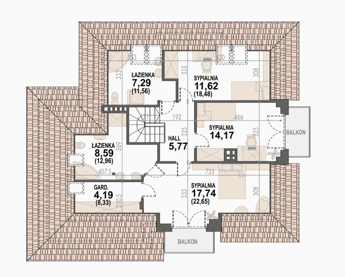 - garderoba 4,19 mkw (po podłodze 8,33 mkw)
