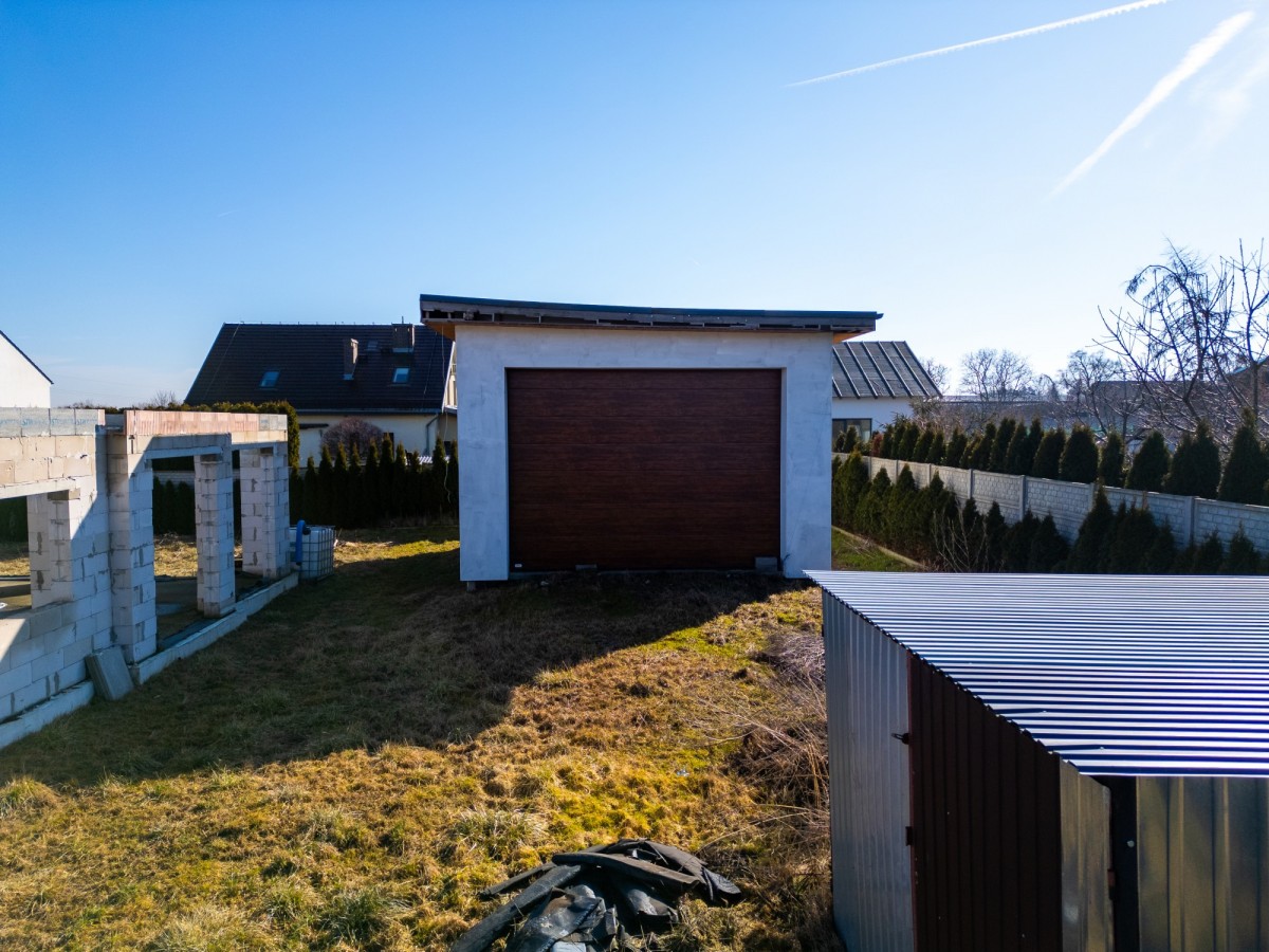 Dodatkowo na działce WOLNOSTOJĄCY GARAŻ o pow. 54 m2, z bramą podnoszoną elektrycznie, o wymiarach 5,20 x 4 m. Okna wyposażone w rolety zewnętrzne. Garaż gotowy, bez tynku.