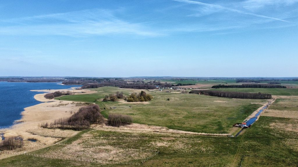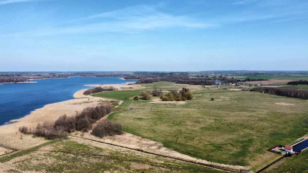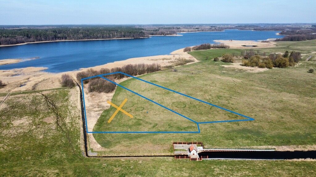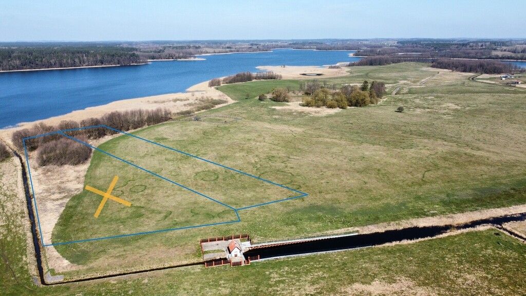 Działka z linią brzegową jeziora Białego na szlaku kajakowym rzeki Krutyni.