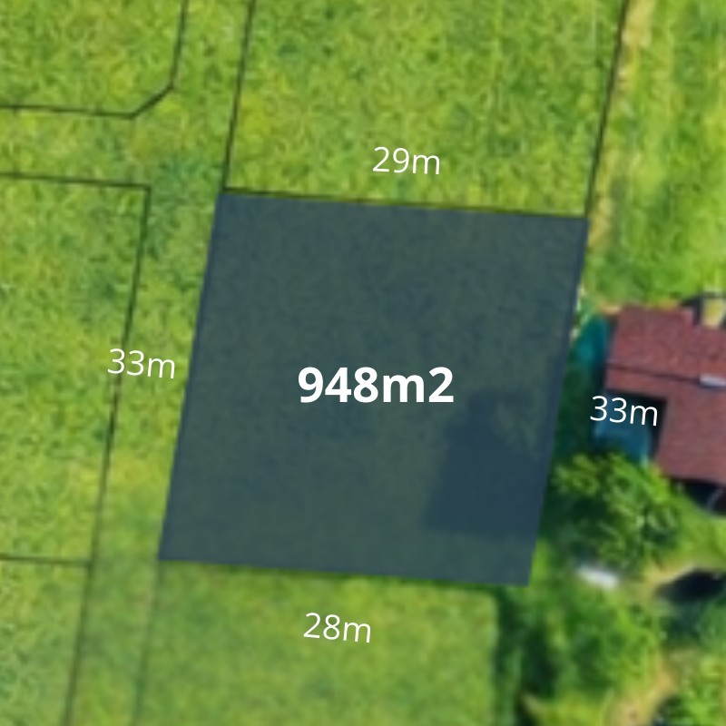 - Powierzchnia działki: 948 m² (29m x 33m x 28m x 33m)