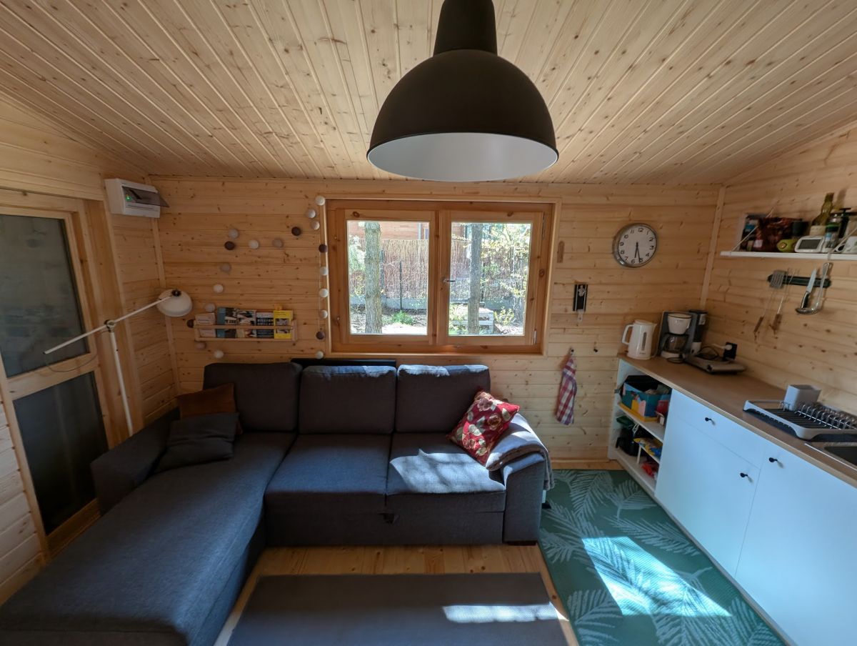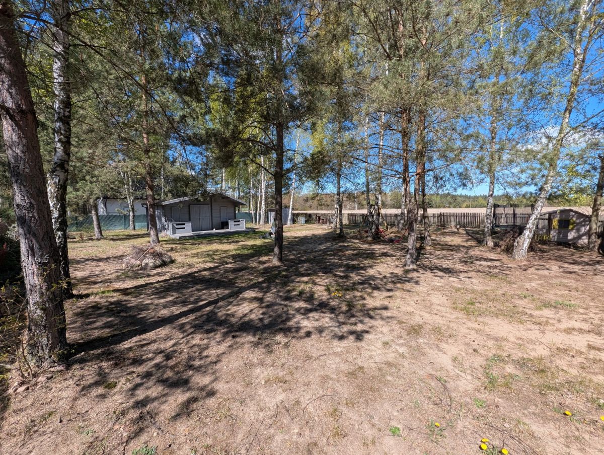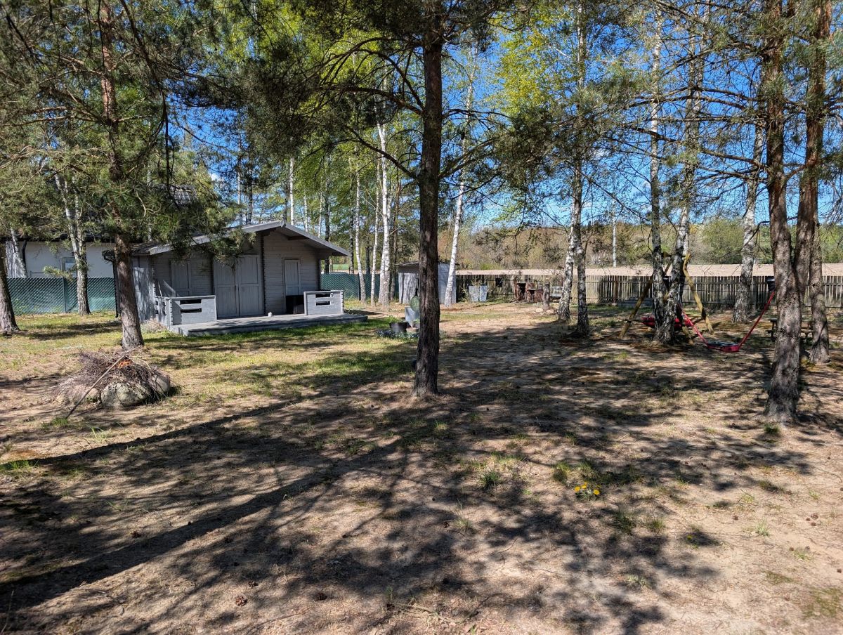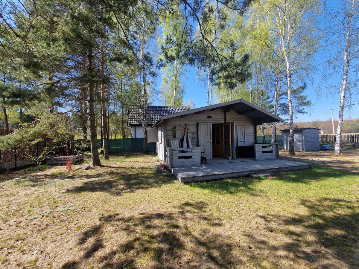 Na działce znajduje się drewniany, ocieplony domek o pow. ok. 30m2 z dużym, częściowo zadaszonym tarasem. Domek podzielony jest na niewielką sypialnię, strefę dzienną - pokój z aneksem kuchennym oraz łazienkę z prysznicem. Domek w pełni wyposażony, uzbrojony w media.