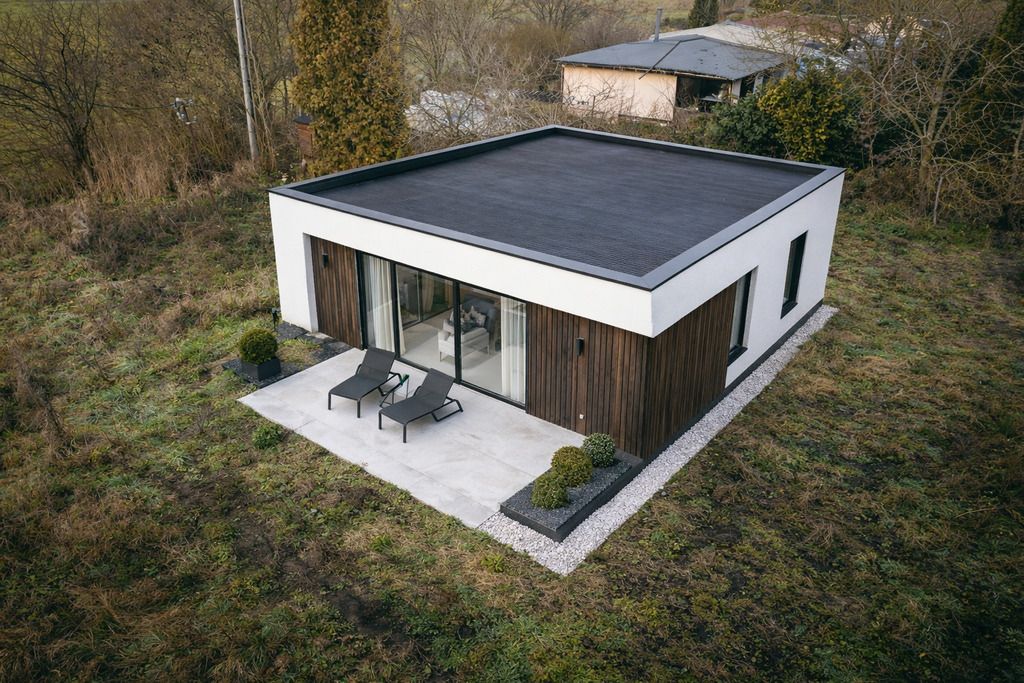 - Dachy: płaskie, dwu- lub wielospadowe o jednakowym kącie nachylenia połaci dachowych do 45º.