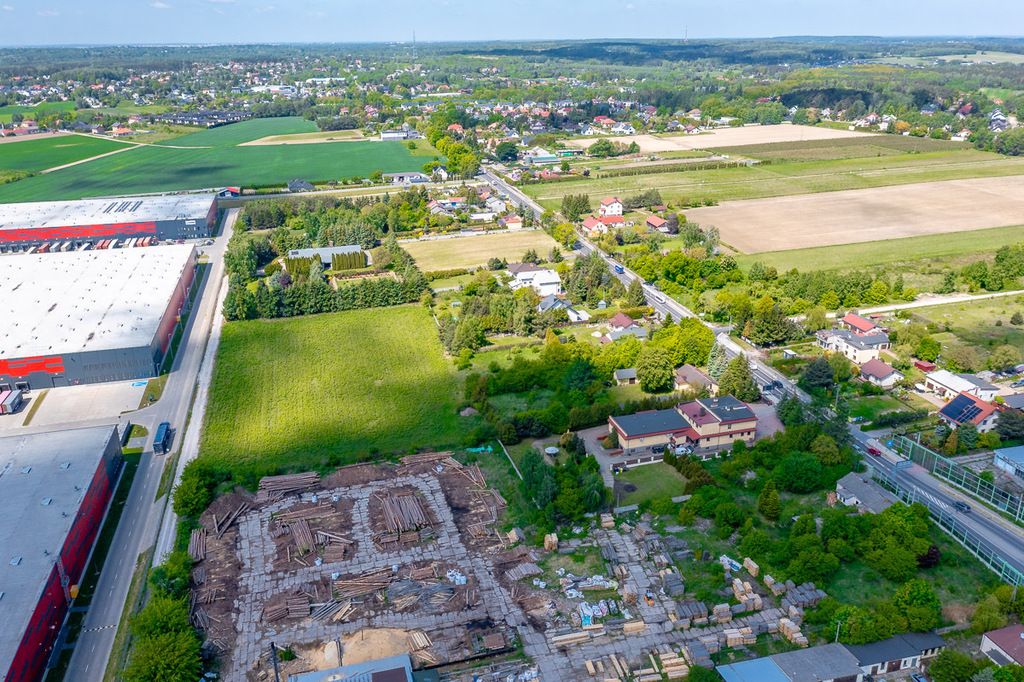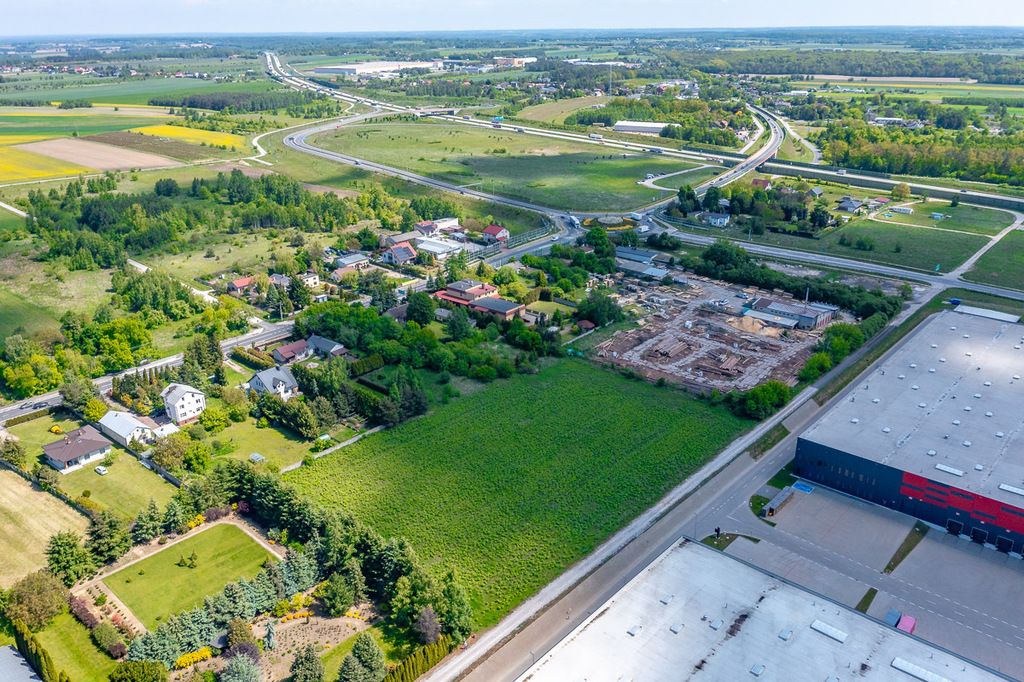Działka z widokiem na inne budynki , otoczona zielenią, zapewnia komfortowe warunki do życia i pracy lub prowadzenia biznesu.