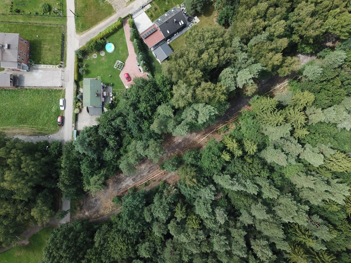 Działka położona przy samym lesie, aktualnie zalesione jednak zgodnie z procedurą możliwość bezpłatnego wyłączenia z produkcji leśnej do 500 mkw lub odpłatnie większej części.