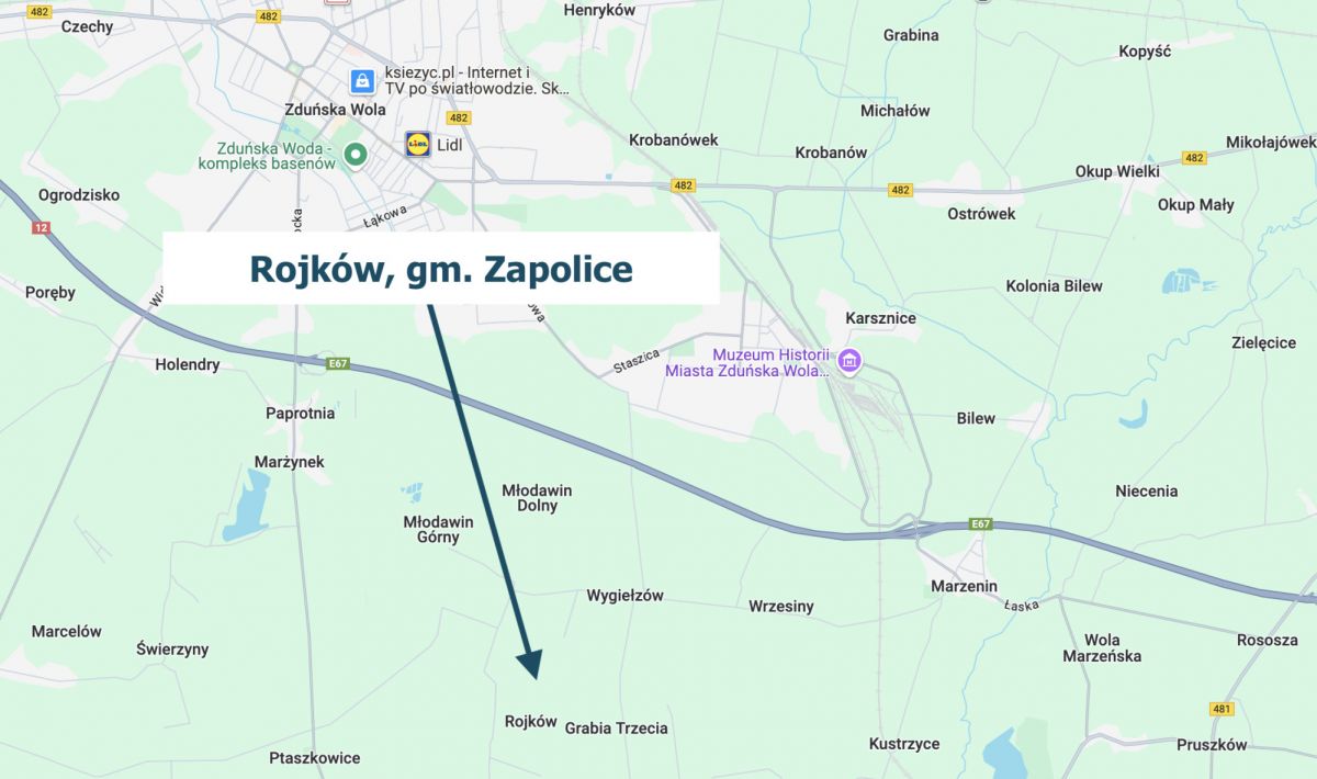 Na sprzedaż nieruchomości gruntowe we wsi Rojków, gmina Zapolice, powiat zduńskowolski. Do każdej działki oddzielnie zostały wydane warunki zabudowy.