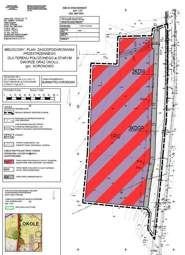 Ogromnym atutem nieruchomości jest obowiązujący MPZP (Uchwała nr XLVI/373/17 Rady Miejskiej w Koronowie z dnia 31 maja 2017 r.).