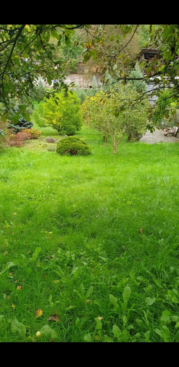 Na samym dole działki płynie strumyk.