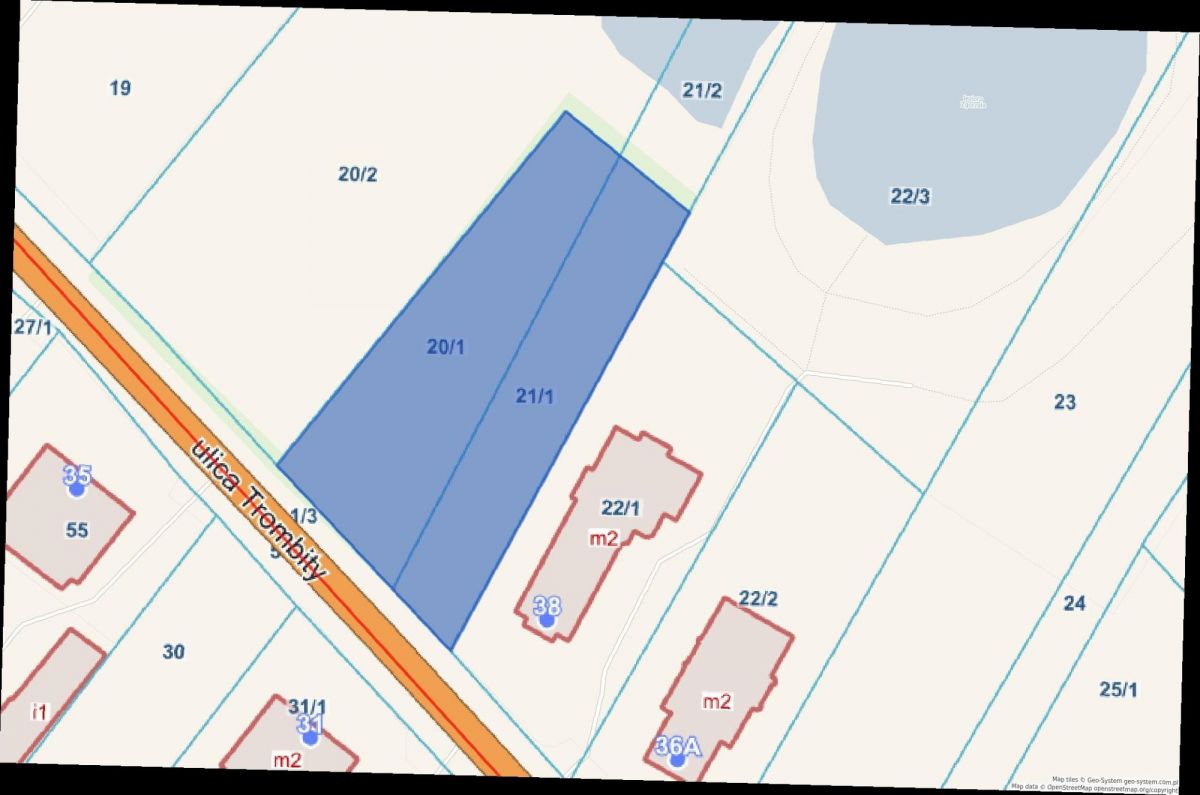 Dojazd: droga asfaltowa, ul. Trombity
