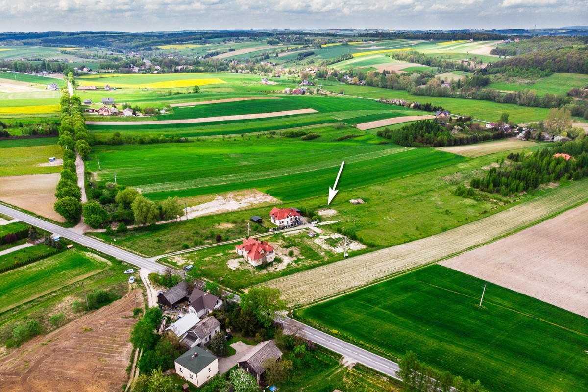 Działka o powierzchni 13,10 ar z pozwoleniem na budowę domu jednorodzinnego - projekt "Dom w Alpinach" Archon. Wg obowiązującego mpzp - działka jest rolna, więc można realizować póki co tylko projekt z wydanym PnB.