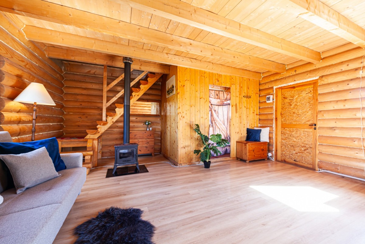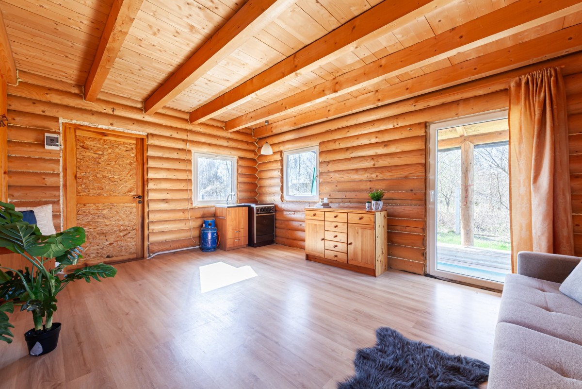 Posesja jest ogrodzona, posiada bramę wjazdową. Znajduję się na niej dom rekreacyjny z bala świerkowego o powierzchni zabudowy 33,64 mkw. Dach wykonany z blachy. W domu do dyspozycji mamy salon z miejscem na aneks kuchenny, łazienkę i poddasze z wykorzystaniem sypialnianym.