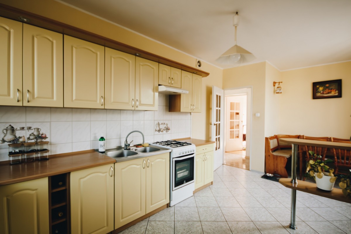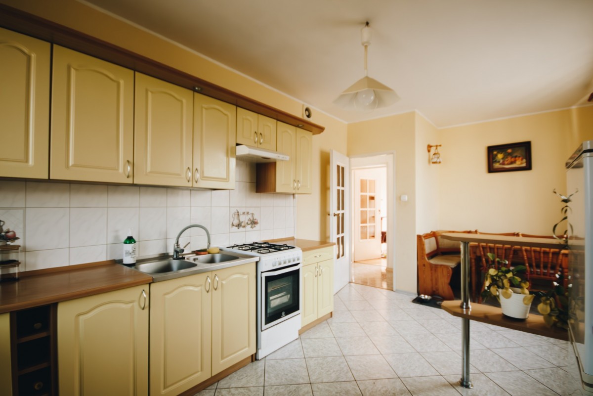 • Parter (ok. 95 m²): niezależne mieszkanie z osobym wejściem, salon, dwie sypialnie, kuchnia, łazienka i ubikacja.