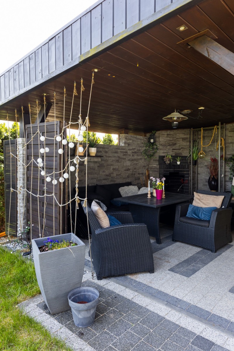 - taras, altana z grillem oraz drewutnia od strony południowo-wschodniej, z tyłu budynku