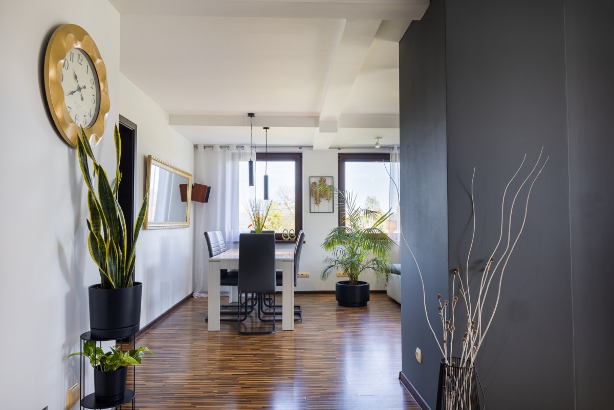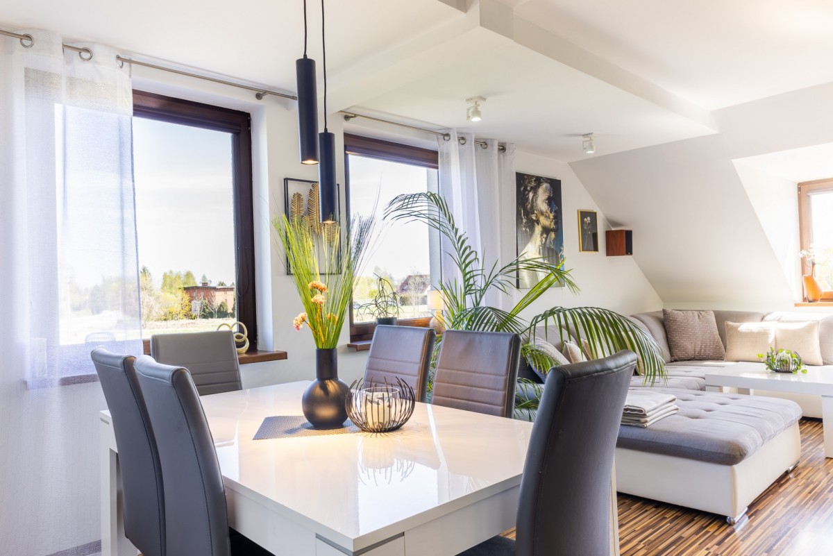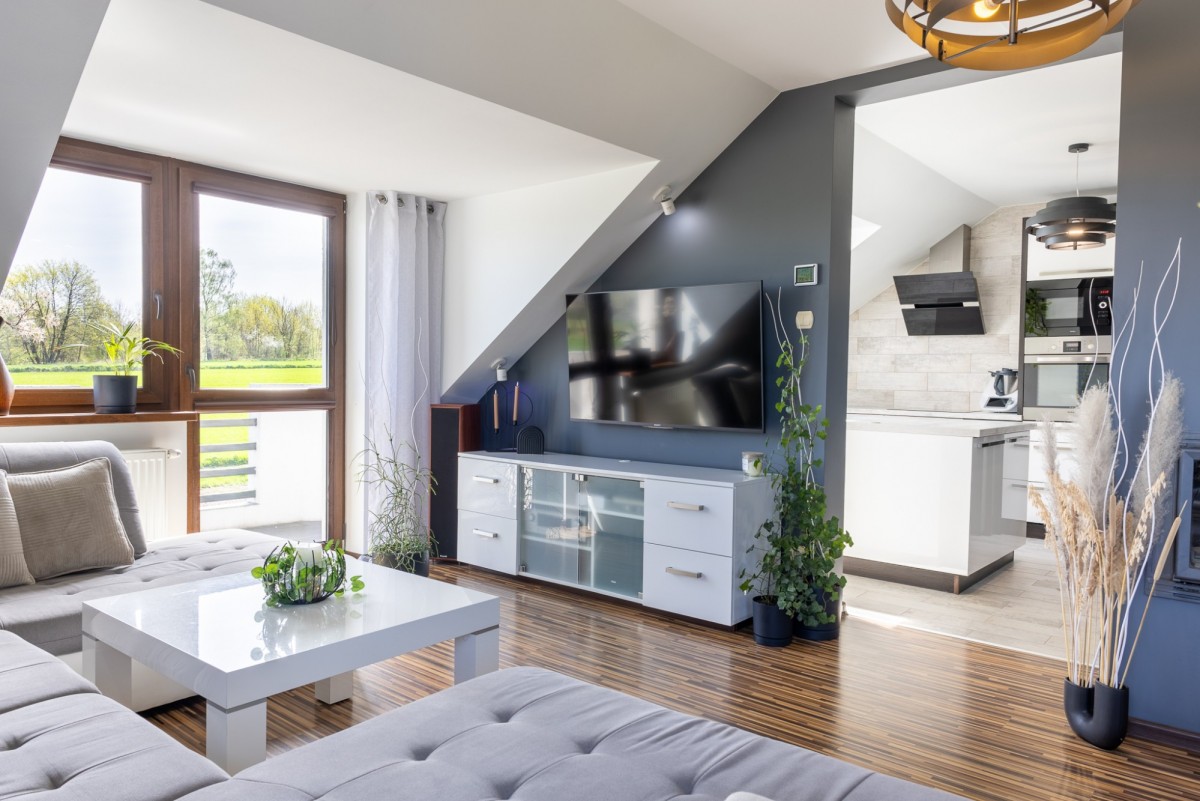 przestrzenny salon (powstał z połączenia dwóch pokoi, które można ponownie podzielić)