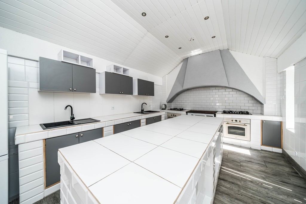 - kuchnia otwarta w zabudowie, połączona z salonem z kominkiem