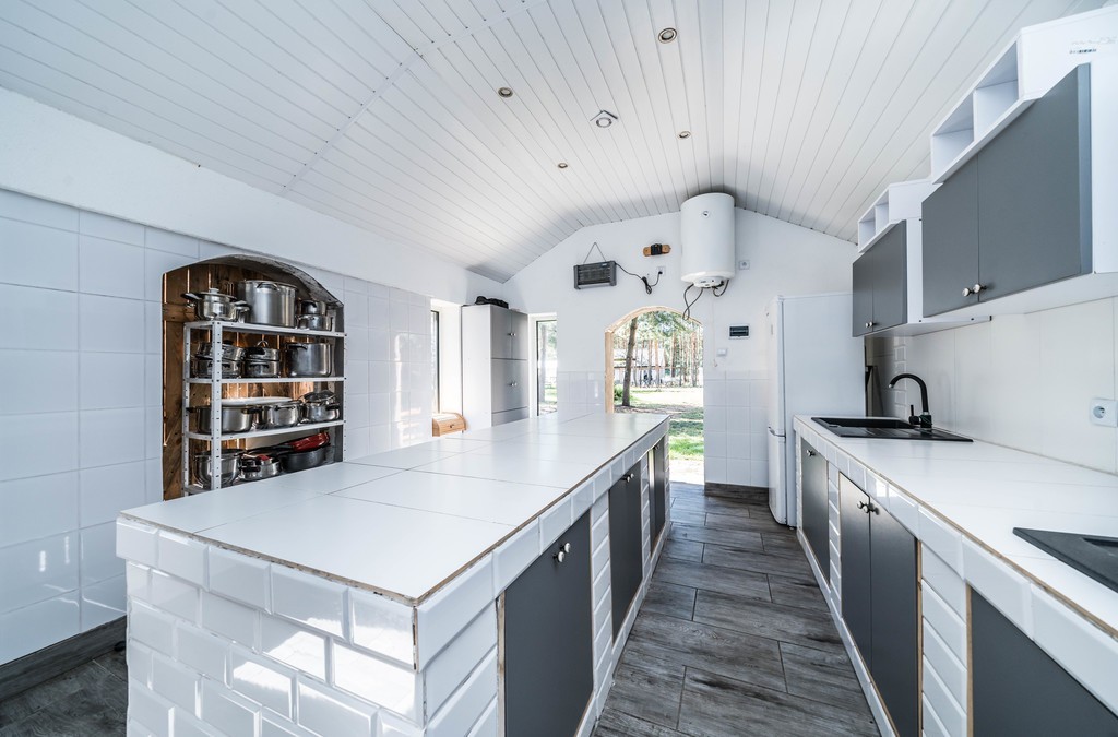 Każdy domek posiada po 2 pokoje, z 4 miejscami noclegowymi, aneks kuchenny i łazienkę
