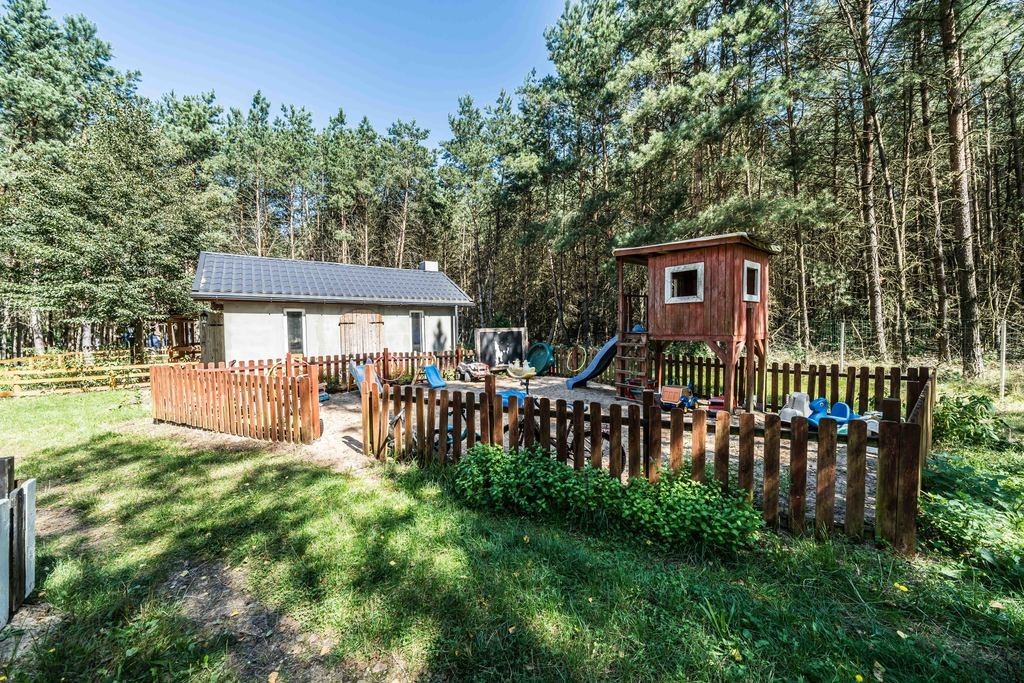1. Dom wolnostojący - budynek główny - o pow. 109 m2, dopasowany kolorystyką do otaczającego go lasu