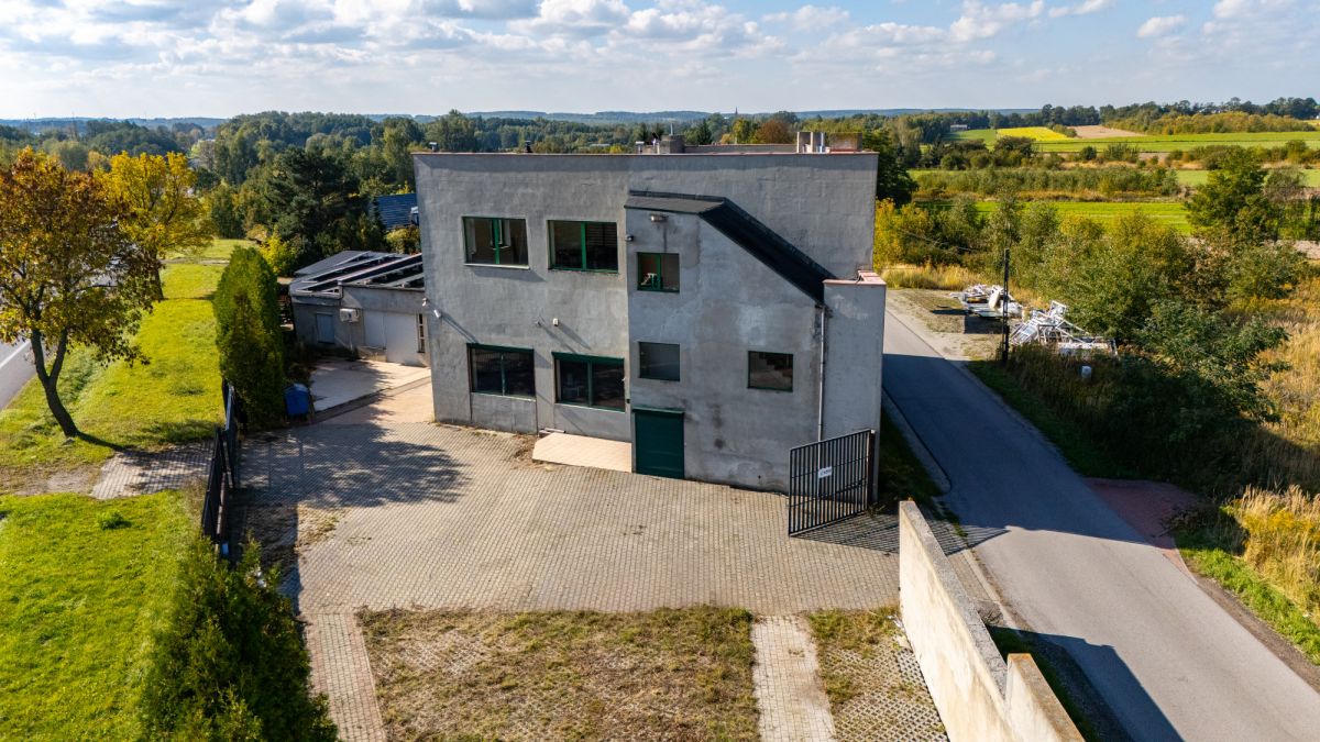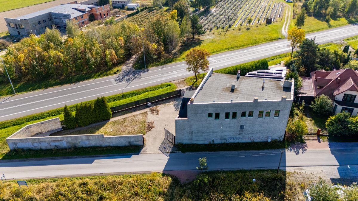 Na działce znajduje się budynek usługowo‑mieszkalny o powierzchni 596,93 m², w stanie do modernizacji i dostosowania do potrzeb inwestora. Parter o powierzchni 371,93 m², w tym hala o wysokości 5,27 m, doskonale nadaje się do działalności produkcyjnej, usługowej lub magazynowej. Piętro o powierzchni 225 m² stanowi funkcjonalną przestrzeń biurowo‑mieszkalną. Całość tworzy gotową bazę operacyjną dla logistyki, dystrybucji, serwisu lub jako zaplecze dla pobliskich parków magazynowych.