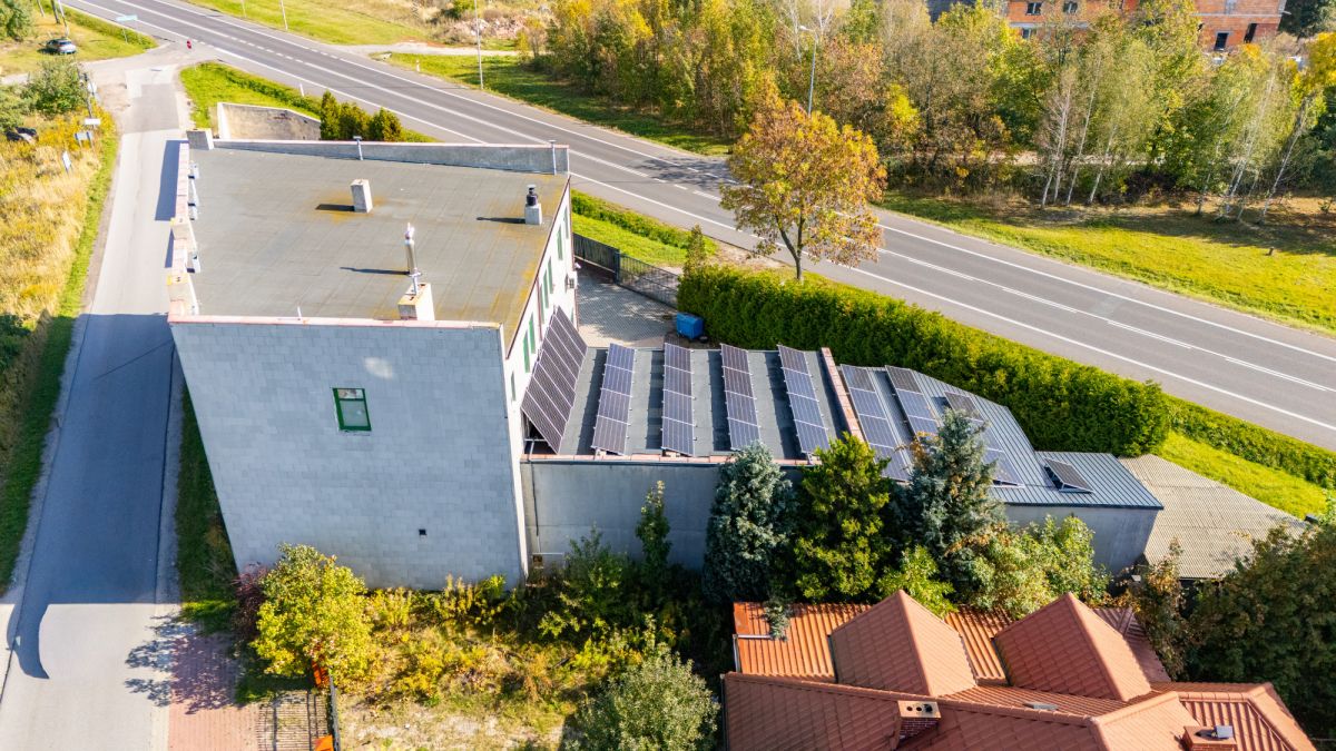 • Pełne uzbrojenie terenu — energia elektryczna, wodociąg, kanalizacja lokalna; dodatkowo instalacje: fotowoltaika (20 kW), klimatyzacja, sieć komputerowa.