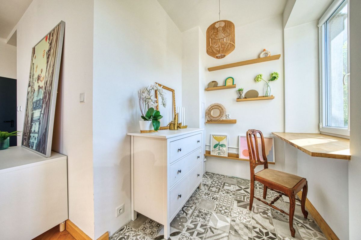 Ta nieruchomość idealnie sprawdzi się na osób pracujących z domu. Dzięki temu układowi można idealnie wydzielić przestrzeń do pracy. Psycholog lub psychoterapeuta mógłby mieć swój gabinet obok mieszkania i przyjmować w dogodnych dla niego godzinach bez straty czasu na dojazd do swojego gabinetu.