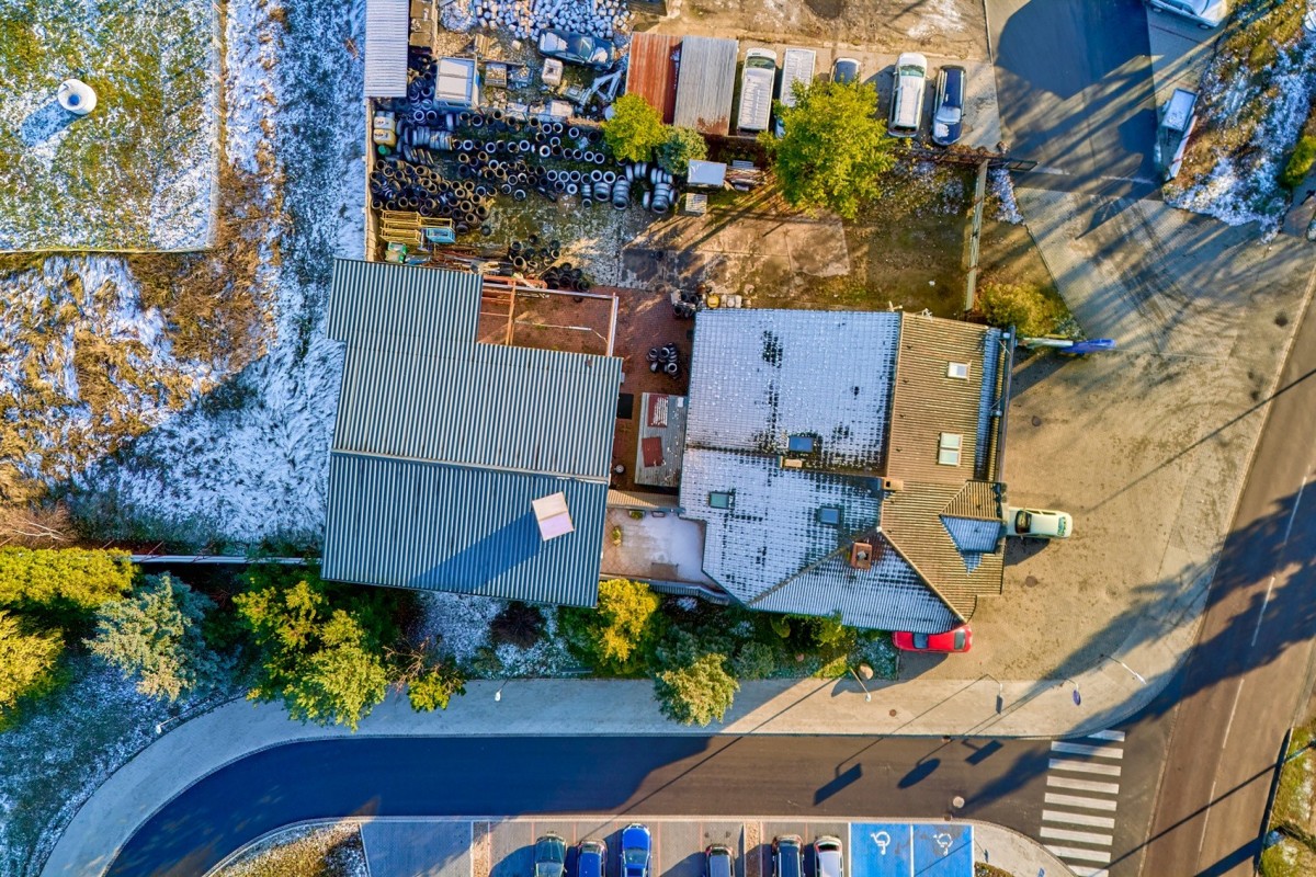 Budynek warsztatowo- mieszkalny wybudowany w 2000r metodą tradycyjna. Ściany budynku wzniesione z suporexu, dach pokryty dachówką ceramiczną, okna plastikowe, dachowe drewniane. Obiekt świetnie widoczny z ulicy. Przed budynkiem znajduje się przestronny parking dla klientów.