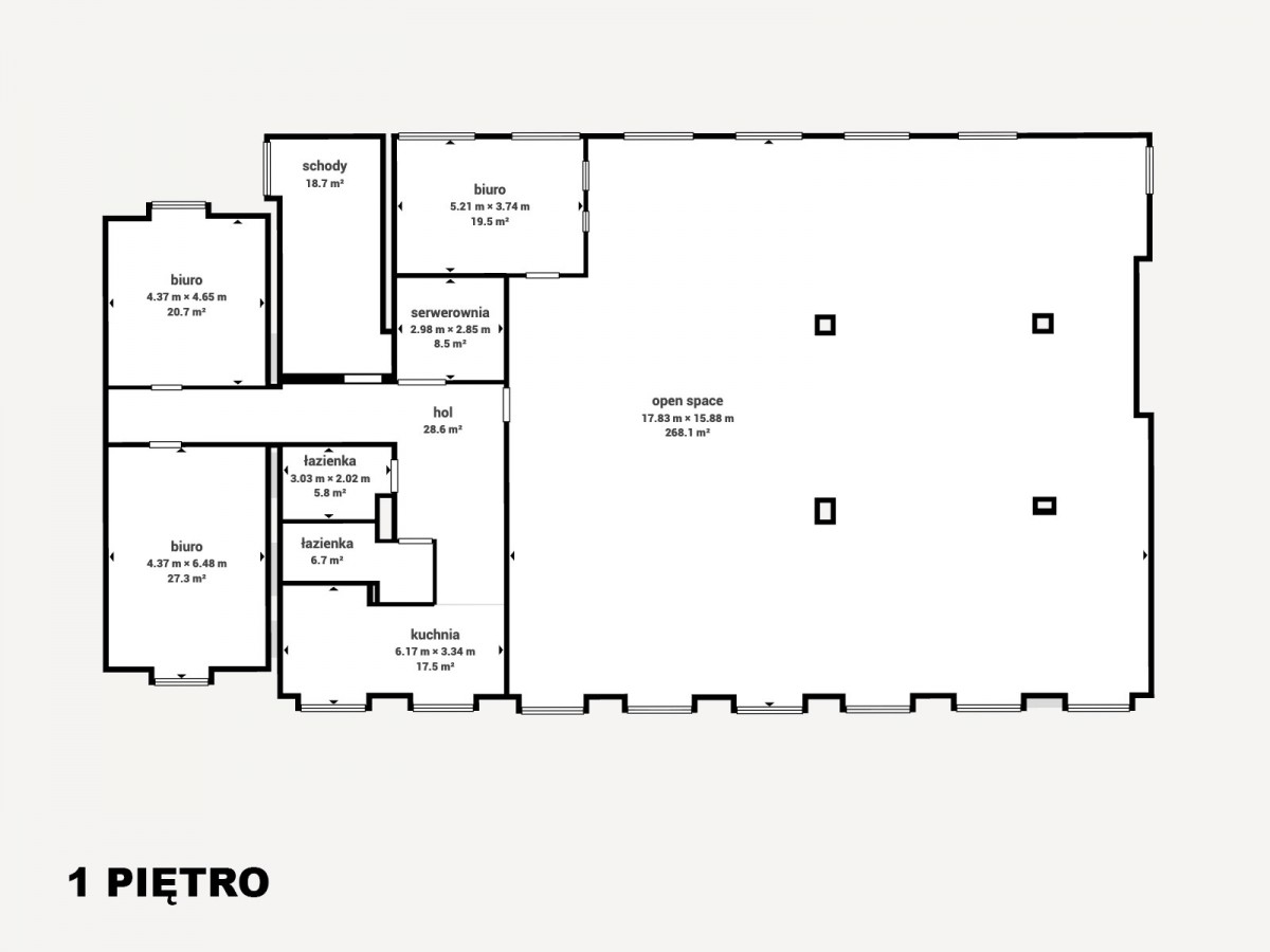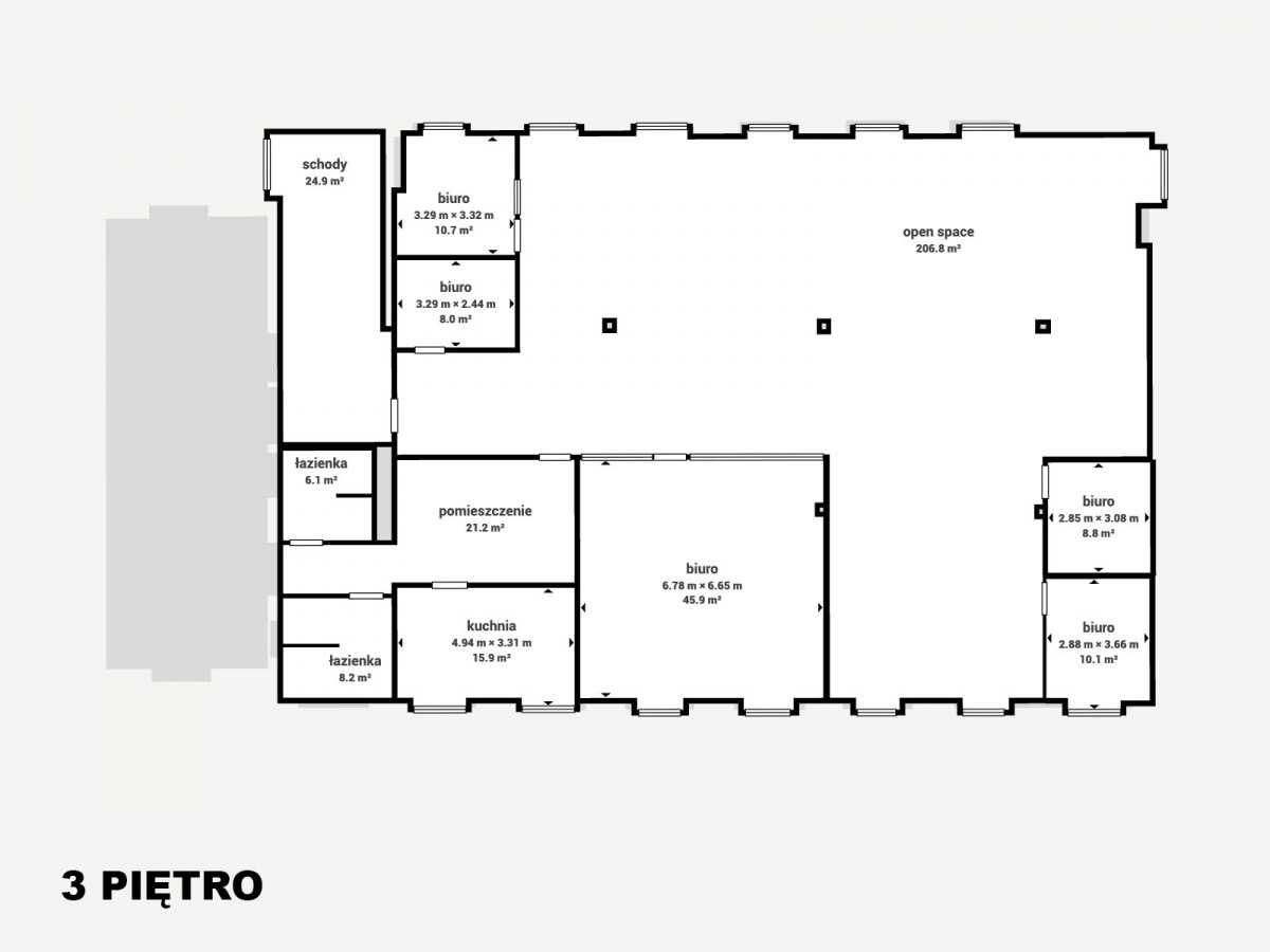 • Liczba kondygnacji: 3 piętra, każde po ok. 400 m²