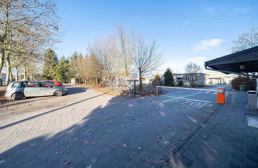 - wjazd zabezpieczony szlabanem oraz budynkiem portierni, co zwiększa bezpieczeństwo i kontrole ruchu