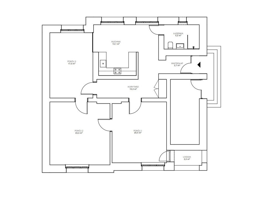 - 3 duże zamykane gabinety - każde z niezależnym wejściem z korytarza, ale pomiędzy nimi również są dodatkowe drzwi