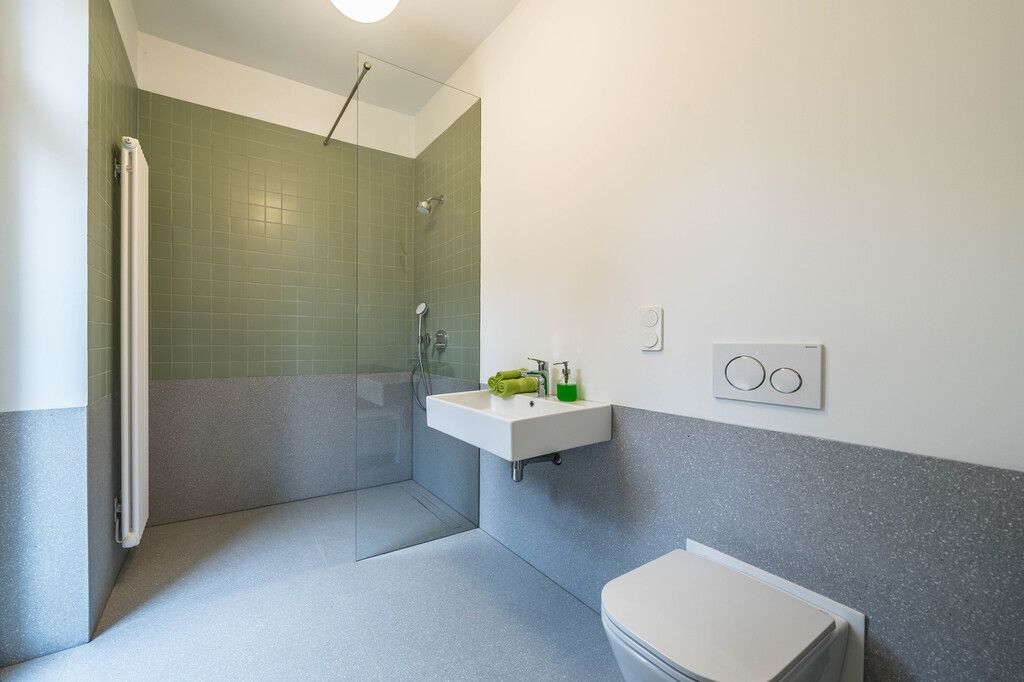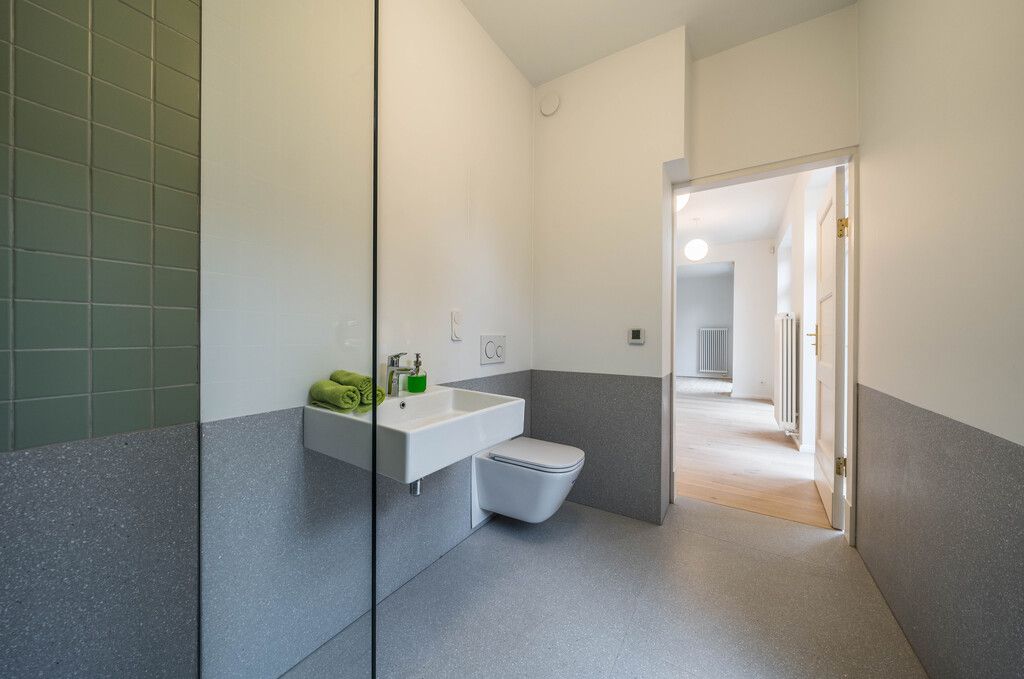 Drewniane podłogi i oryginalna stolarka drzwiowa pięknie współgrają z nowoczesnym zapleczem socjalnym. Stylowe grzejniki i lampy dodają tym wnętrzom loftowego, oryginalnego charakteru.