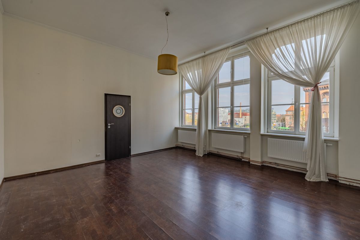 Nieruchomość wyróżnia się wysokimi pomieszczeniami (ok. 350 cm), co daje poczucie przestrzeni i komfortu, a także podkreśla charakter zabytkowej zabudowy.