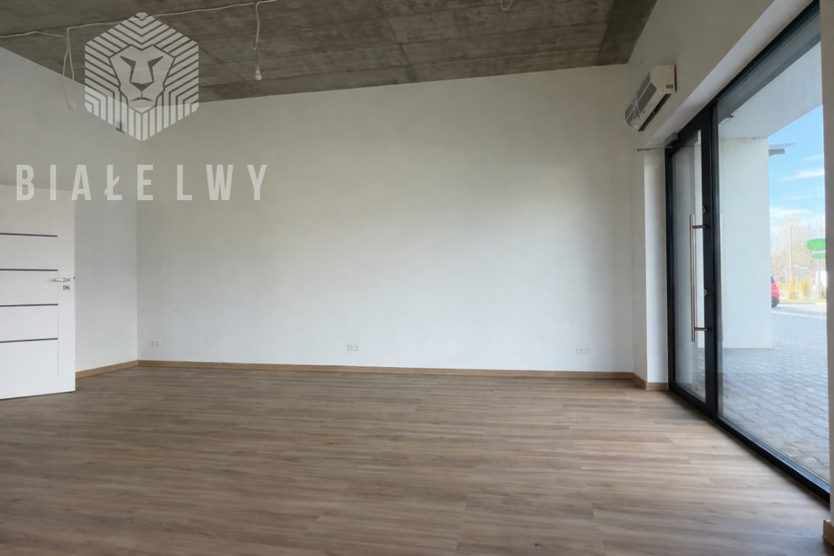 Do wynajęcia lokal o powierzchni 72,60 m2 na parterze z dodatkowym wyjściem z tyłu budynku oraz witryną od głównej ulicy drogi wojewódzkiej nr 683.