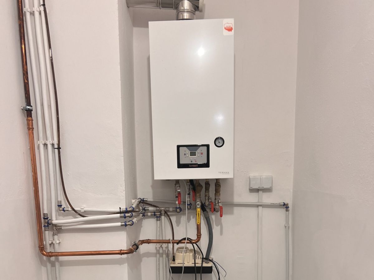 Mieszkanie na parterze 3 pokoje, kuchnia, łazienka i schowek - pomieszczenie gospodarcze w której znajduje się gazowy piec dwufunkcyjny i można podłączyć pralkę.