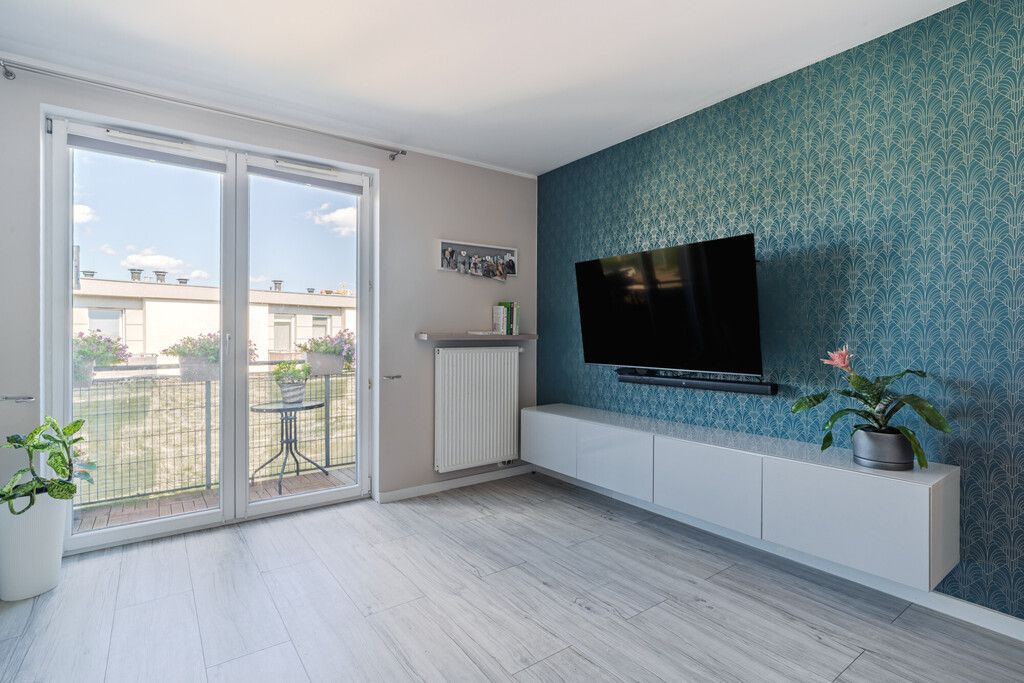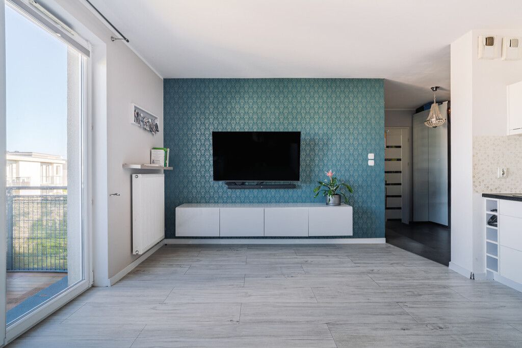 - salon z aneksem kuchennym z wyjściem na balkon