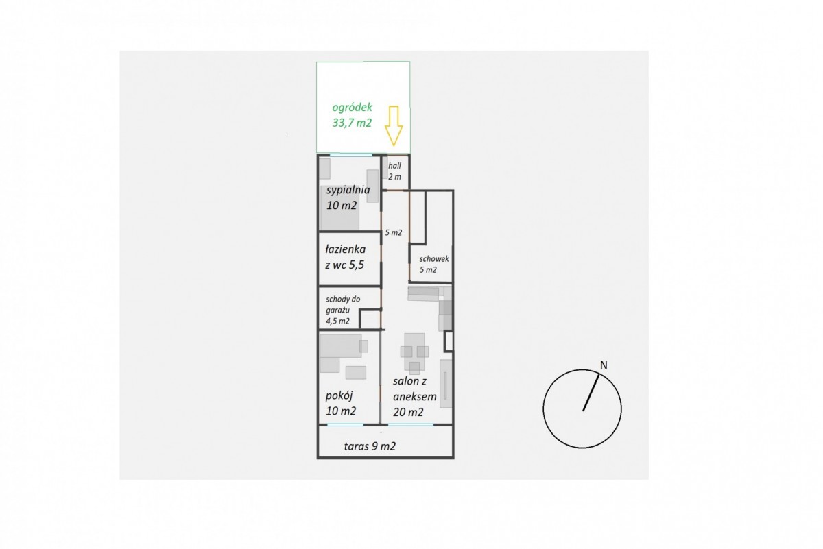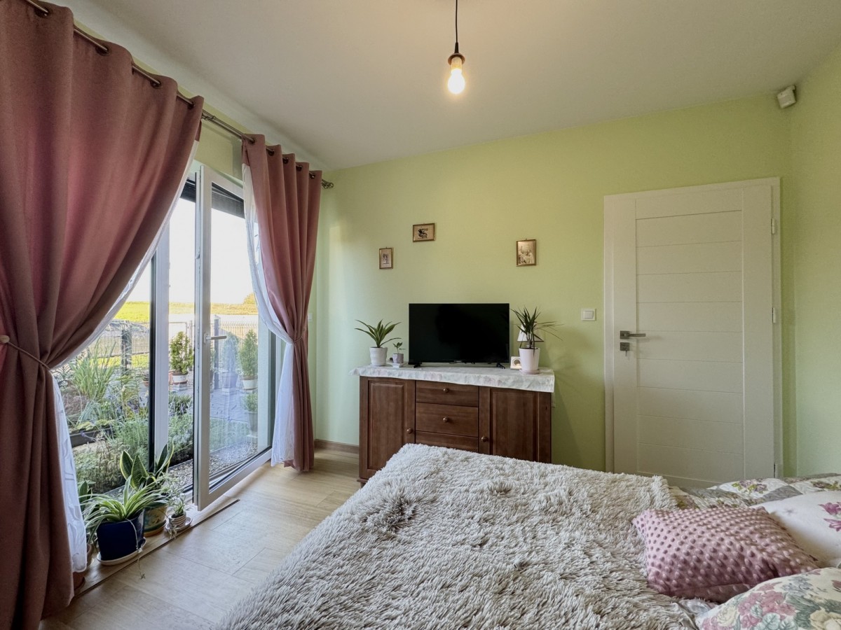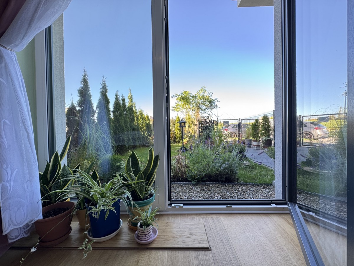Nowoczesny wykończony apartament 62 m2 z wyjściem bezpośrednio z sypialni do kwitnącego ogródka 36 m, z przestronnym tarasem 9m, jednostanowiskowym garażem i widokiem na wzgórza Brzeska