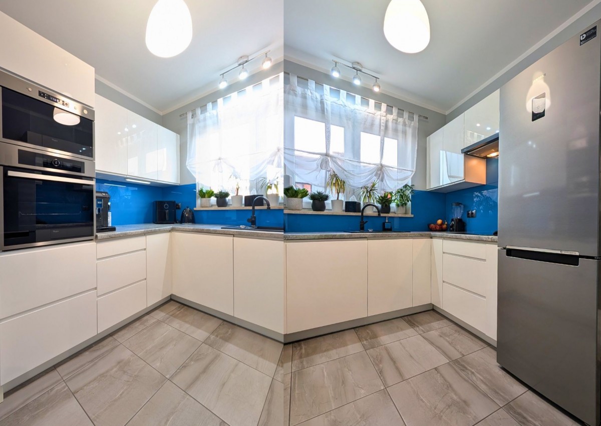 3. Czy nieruchomość wymaga nakładów finansowych przed wprowadzeniem? Zdecydowanie nie. Ten dom to rynek wtórny w bardzo dobrym stanie wykończenia. Pełne wyposażenie, w tym wysokiej jakości sprzęt AGD w kuchni oraz pojemne szafy w zabudowie na piętrach, zostaje dla nowego właściciela.