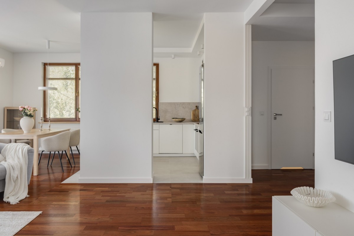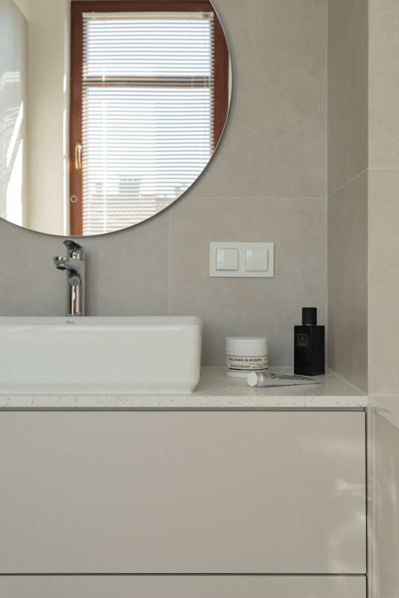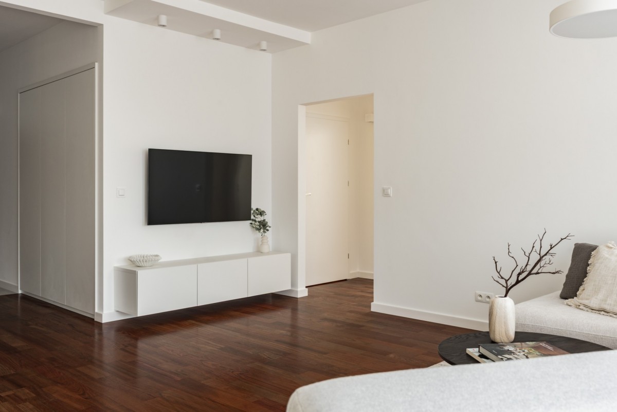 The apartment after a general renovation. The interiors were designed in a modern, yet timeless style. The space has been arranged in a very functional way.