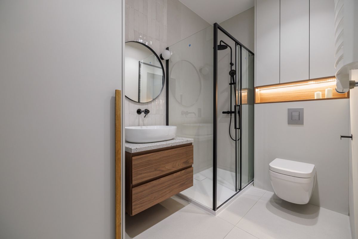 * łazienki z prysznicem typu walk-in,