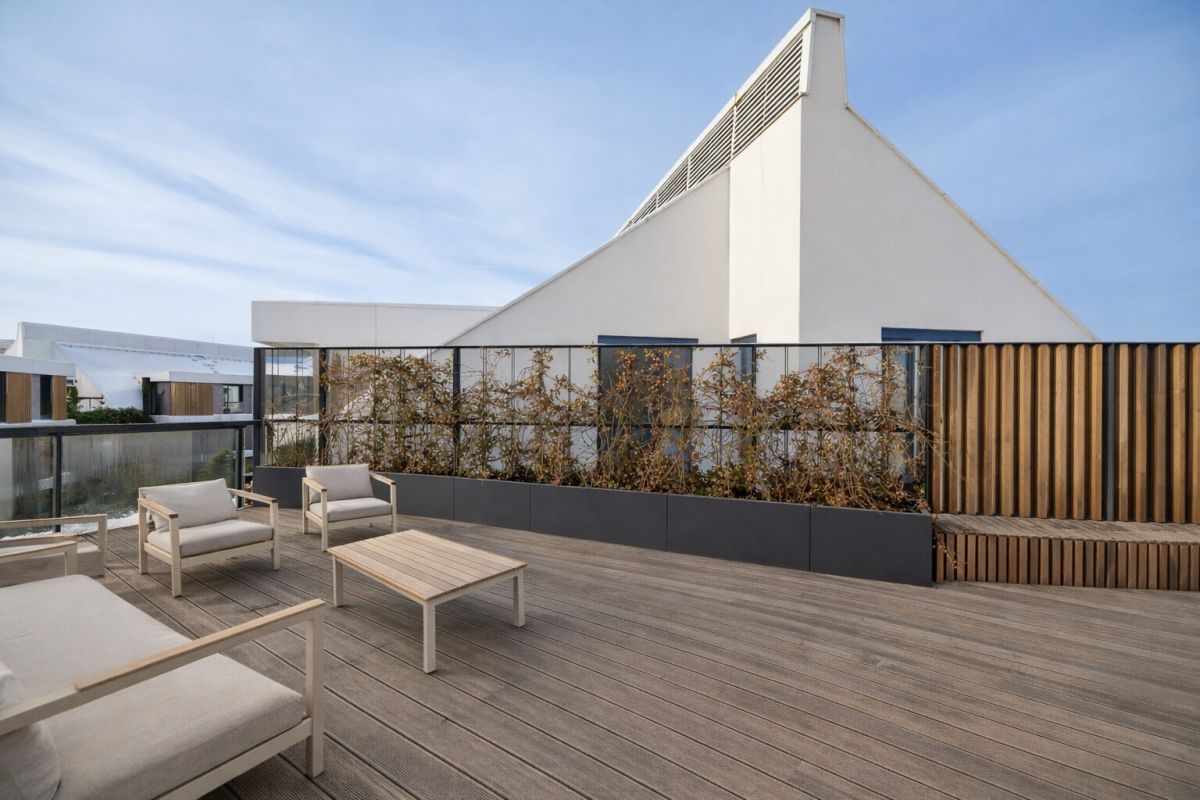 Największym atutem jest wspomniany taras o powierzchni 34 m² od strony południowo-zachodniej. W praktyce oznacza to słońce wtedy, kiedy wracasz do domu, świetne warunki do spędzania czasu na zewnątrz i klimat, który trudno odtworzyć w klasycznym balkonie: kawa o zachodzie, kolacja z przyjaciółmi, rośliny, leżaki... tak wygląda prawdziwy komfort, ukryty pośród Pasa Nadmorskiego w Gdańsku.