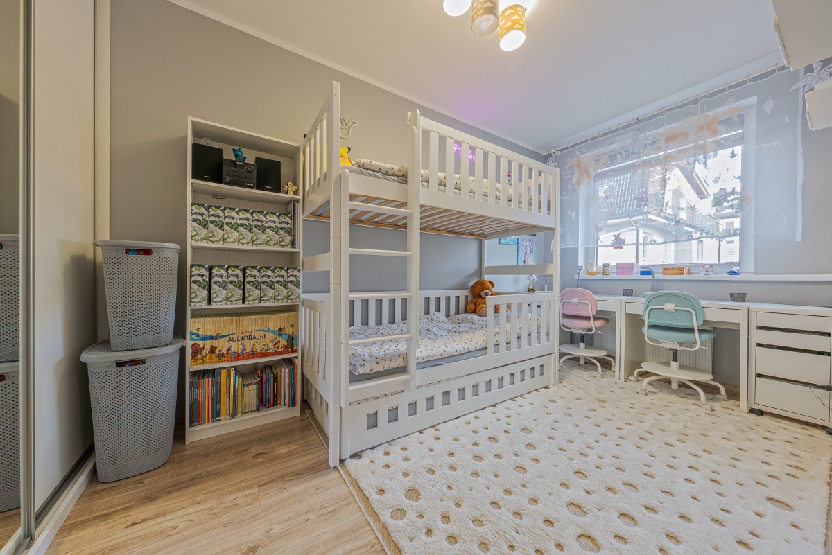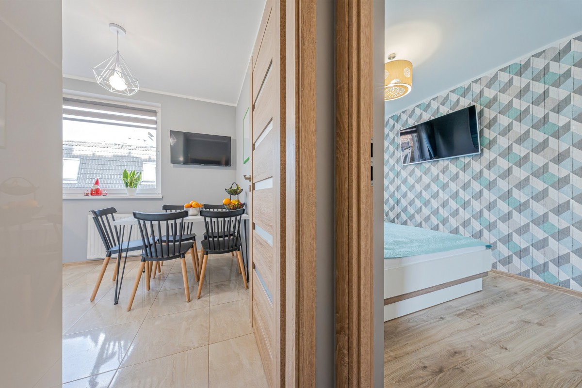 • DWA USTAWNIE POKOJE (11 m² oraz 10,7 m²) - każdy z instalacją pod telewizor, co zapewnia swobodę aranżacji sypialni, gabinetu czy pokoju dziecięcego.