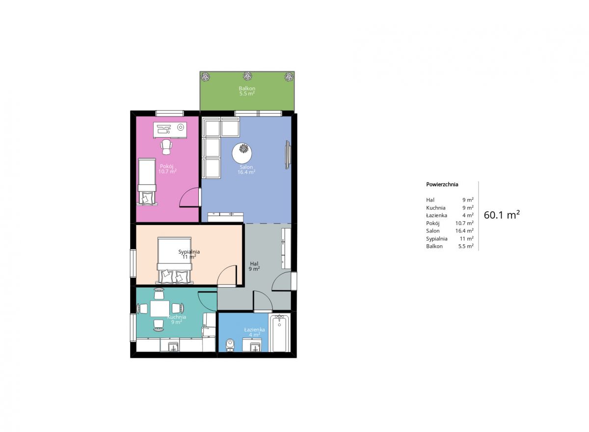 - Powierzchnia:60,20 m2