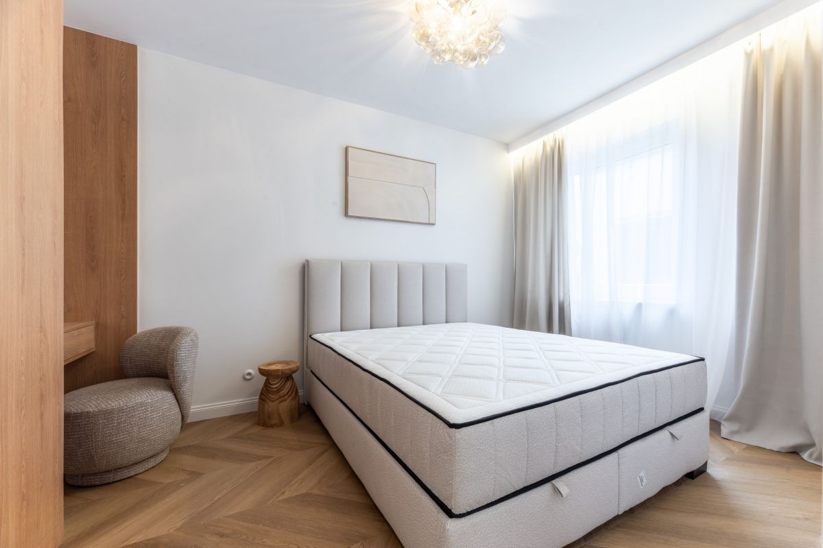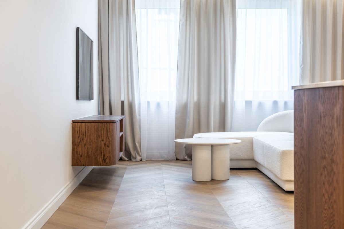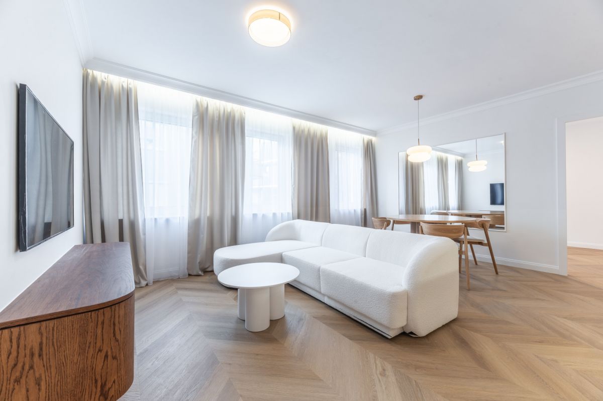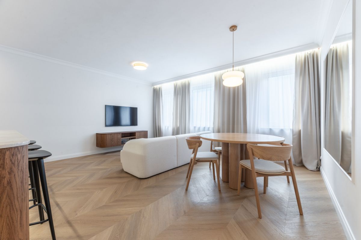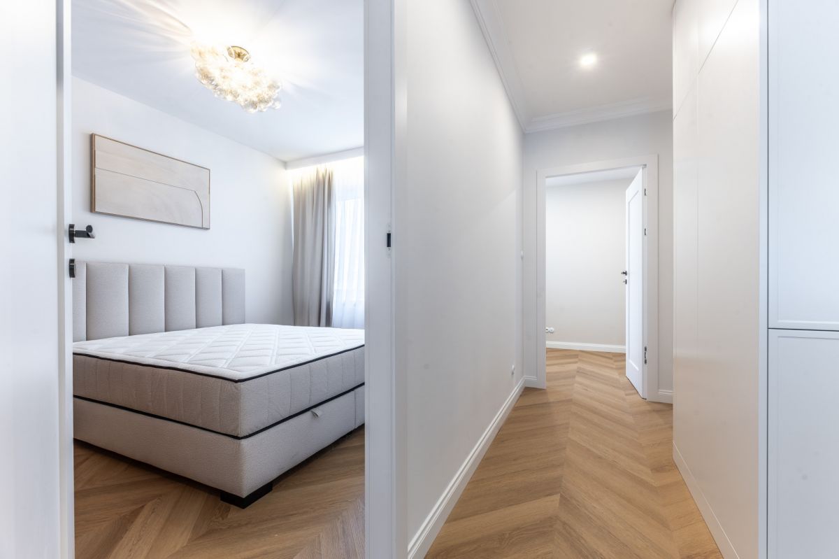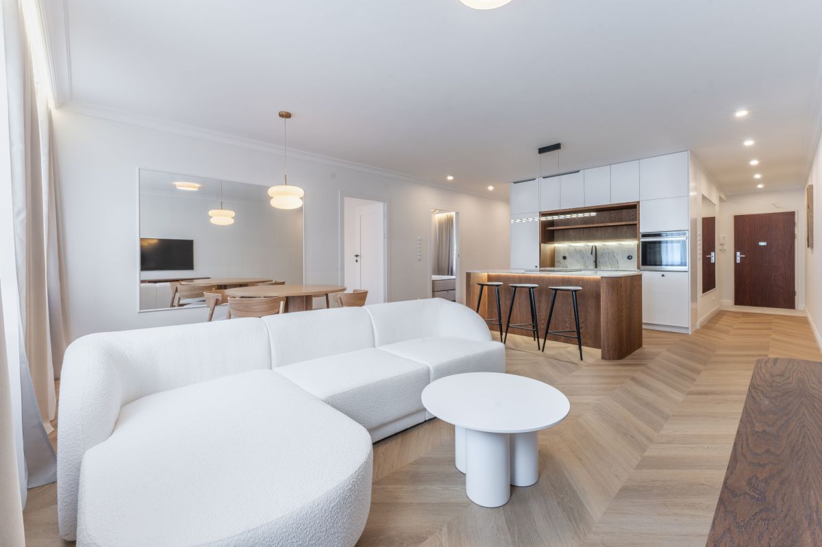 Ten starannie zaprojektowany, 80-metrowy apartament położony na 2. piętrze prestiżowego budynku Investcomfort to propozycja dla osób, które poszukują połączenia elegancji, wygody i ponadczasowej jakości. Wnętrze zostało wykończone z niezwykłą dbałością o detal. Każdy element dobrano z myślą o trwałości, estetyce i codziennej wygodzie.
