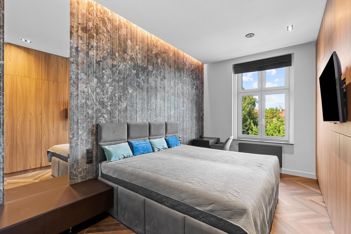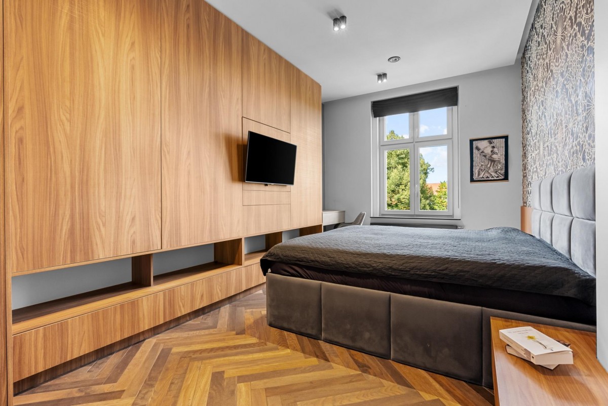 Aleja Wojciecha Korfantego przy której zlokalizowany jest apartament to jedna z najbardziej reprezentacyjnych ulic w Gliwicach, stanowiąca część eleganckiej dzielnicy willowej z przełomu XIX i XX wieku. To miejsce o wyjątkowym charakterze, gdzie historia spotyka się z nowoczesnością. Już od lat uchodzi za prestiżowy adres, kojarzony z solidną architekturą, eleganckimi kamienicami i zadbanymi willami, które do dziś podkreślają unikatowy klimat tego fragmentu miasta.