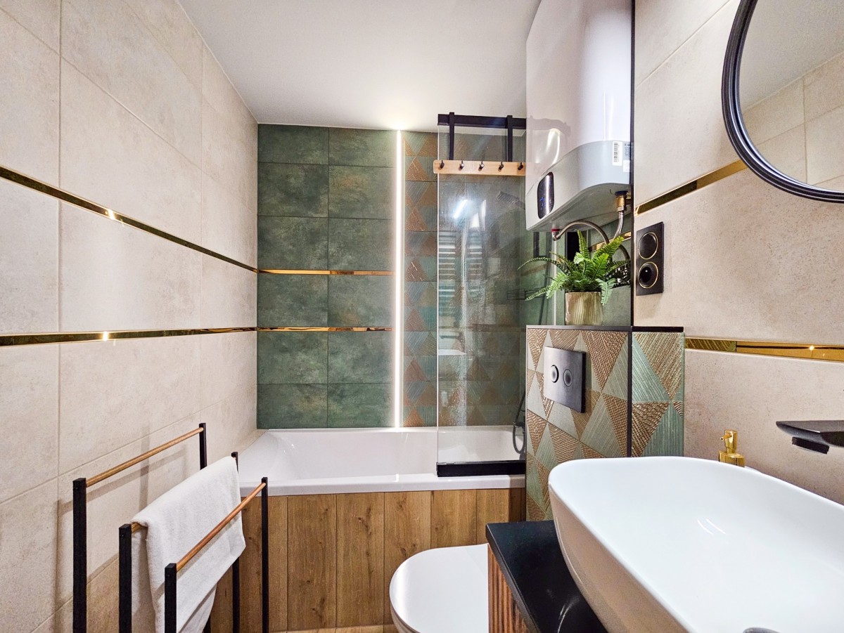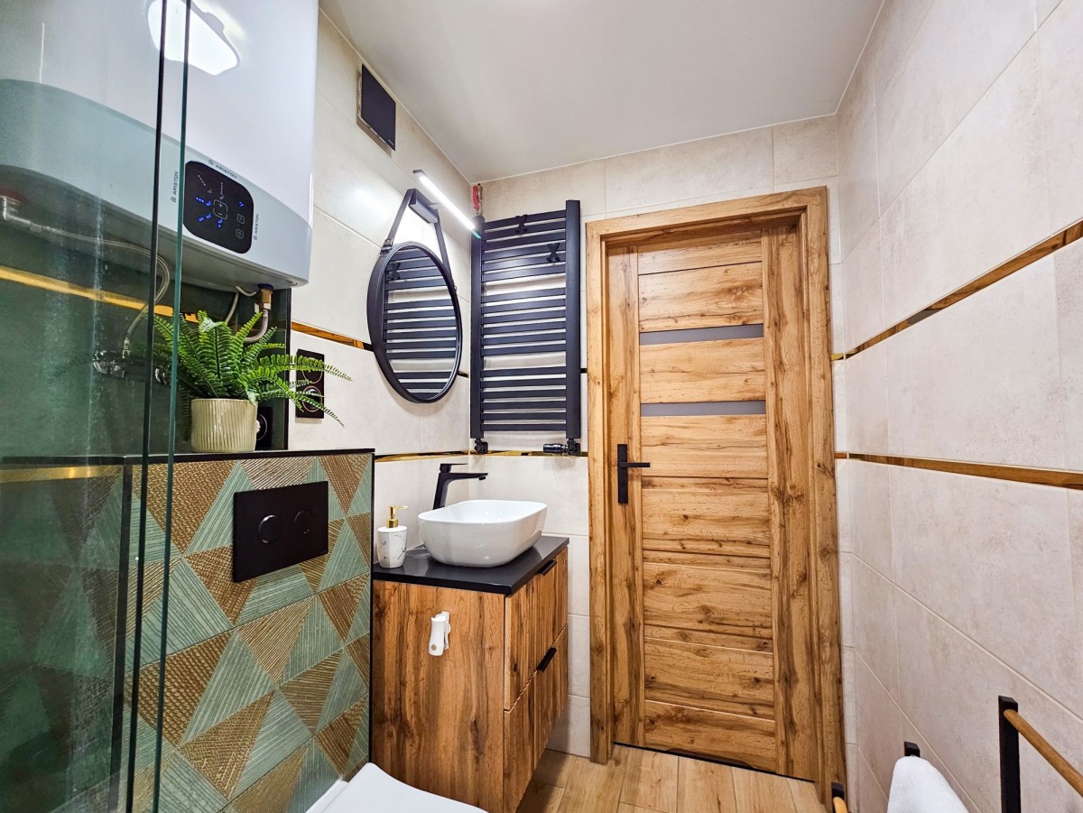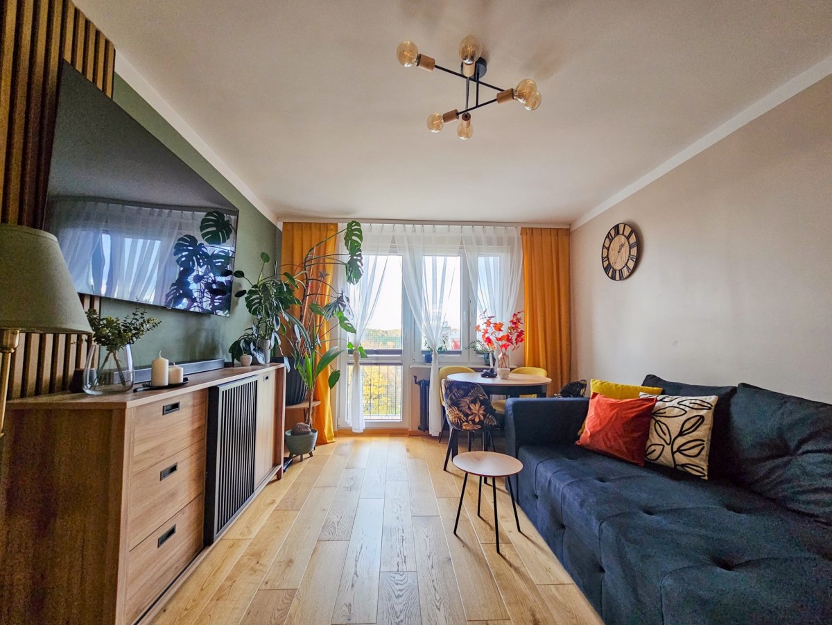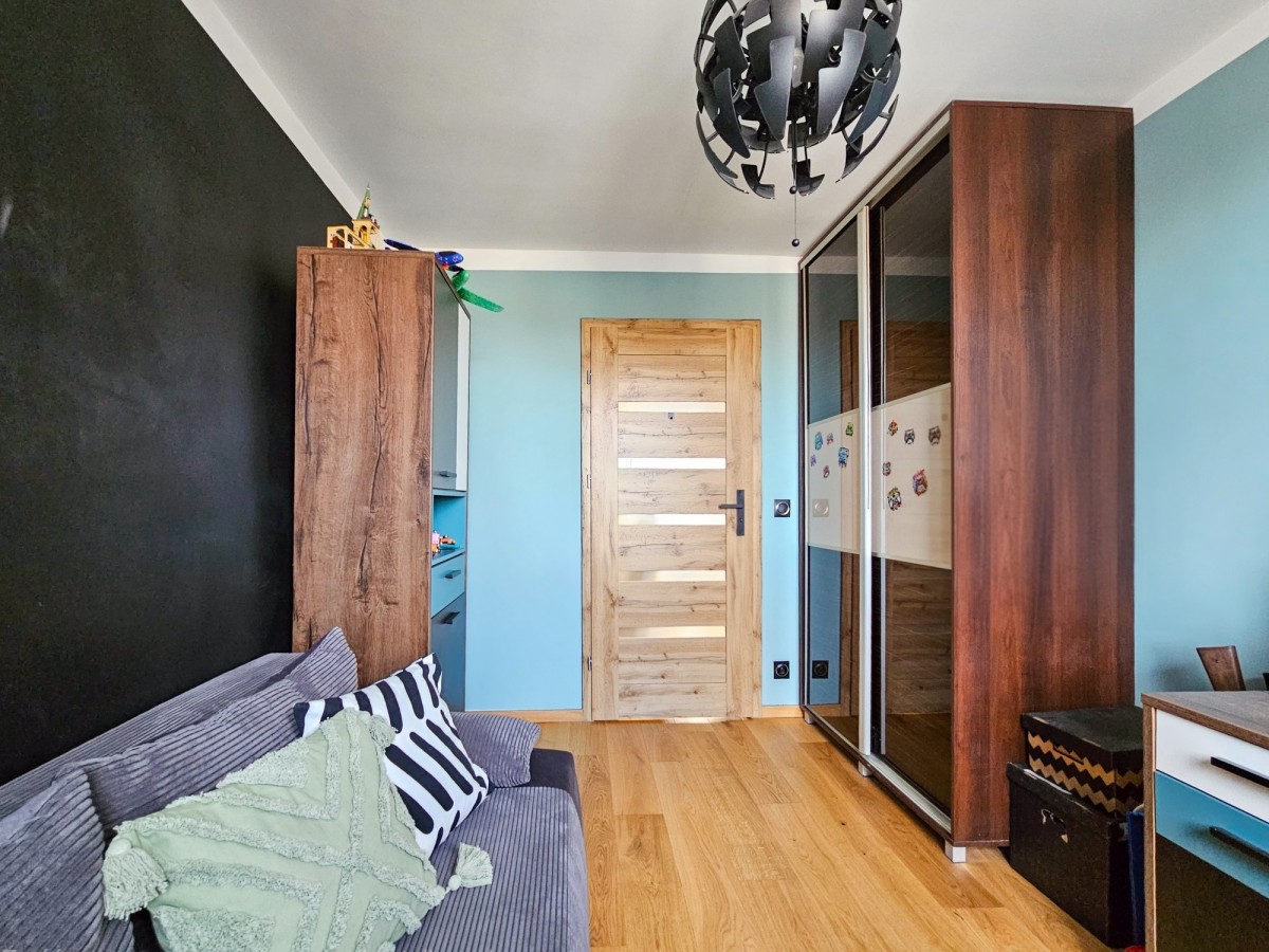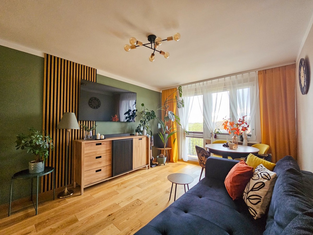 Mieszkanie wykończone z dbałością o każdy detal - drewniane podłogi, nowoczesne, przemyślane oświetlenie oraz meble w zabudowie, które gwarantują maksymalne wykorzystanie przestrzeni i elegancki wygląd.