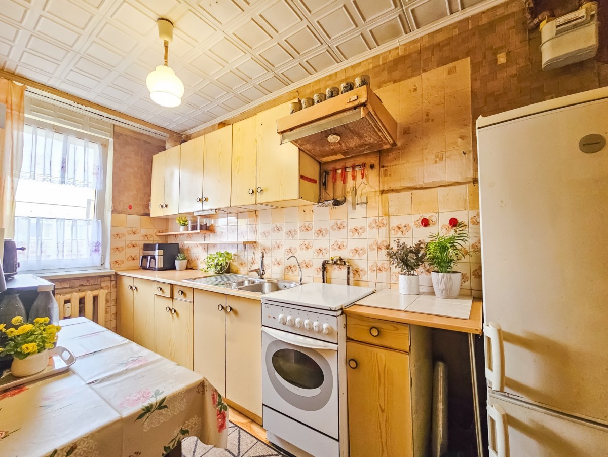Mieszkanie wymaga remontu - czeka na Twoją wizję i aranżację. Świetny układ pomieszczeń i dwa balkony dają ogromne możliwości. Budynek po termomodernizacji (ocieplony, nowa elewacja), co zapewnia niższe koszty ogrzewania.
