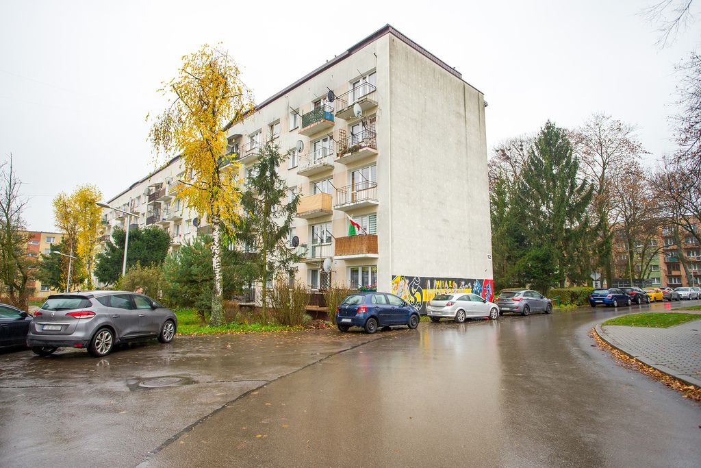 Na sprzedaż 2-pokojowe mieszkanie o powierzchni 48 m², zlokalizowane przy ul. Mieszka I w Jędrzejowie, na 4. piętrze w niskim, 4-piętrowym bloku.