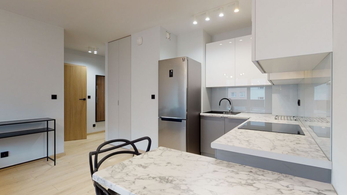 Mieszkanie znajduje się w budynku oddanym do użytku w 2020 roku przez dewelopera MURAPOL. Zarządza nim ADM Property, a czynsz wynosi ok. 500 zł, obejmując m.in. centralne ogrzewanie i wodę.