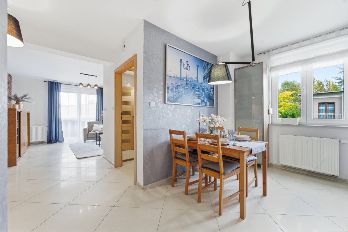 Apartament znajduje się w jednej z najspokojniejszych dzielnic Katowic. To miejsce, gdzie sąsiedzi dbają o dobre relacje i tworzą przyjazną atmosferę.
