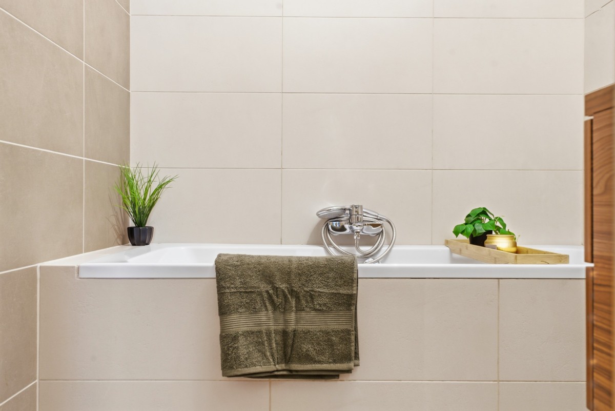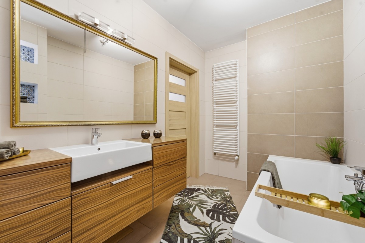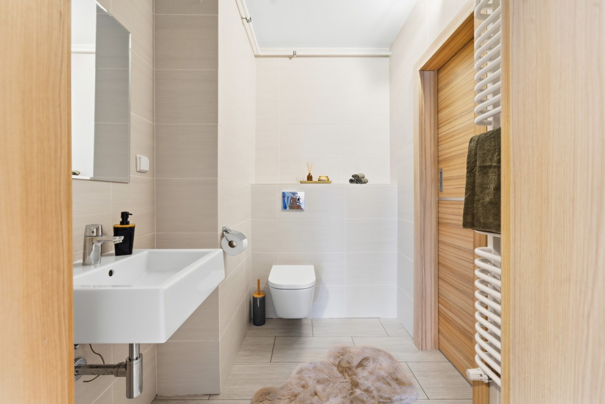 Poziom II: komfortowa łazienka z wanną oraz wygodne sypialnie, które zapewniają ciszę i prywatność.