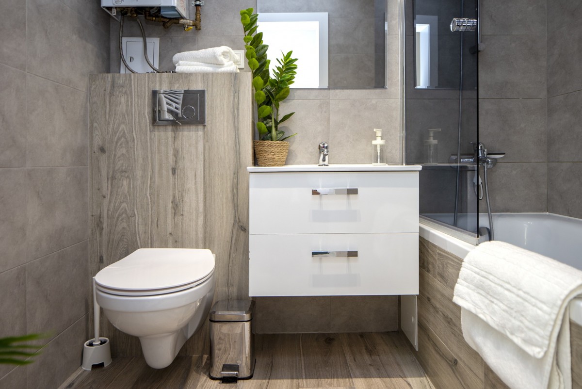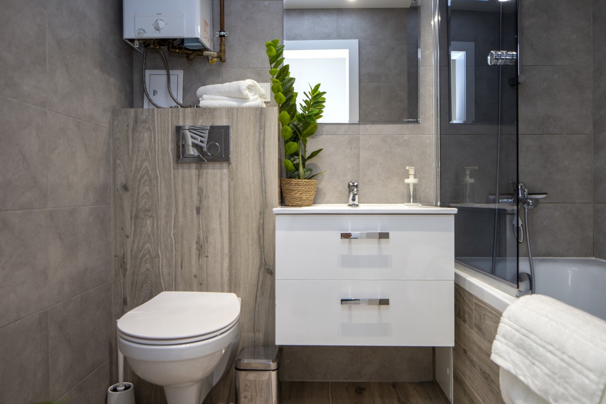 • łazienka z WC i wanną (plus szklana szyba prysznicowa),
